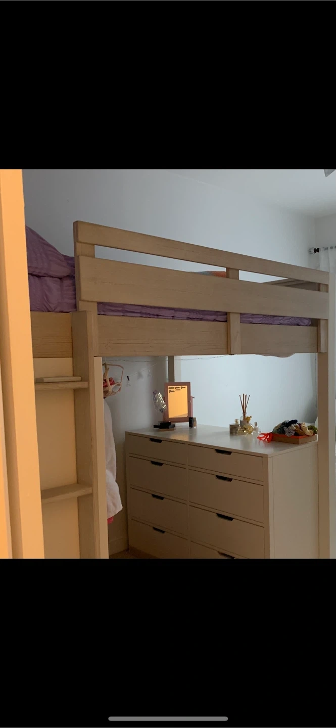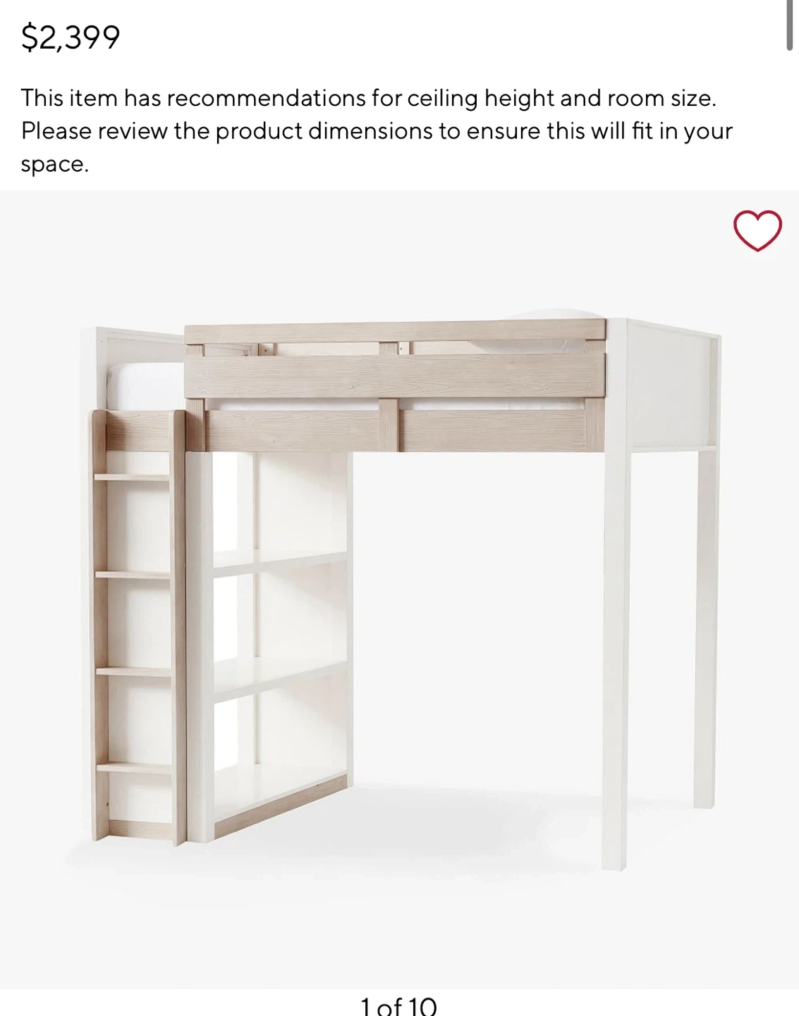5Selling a Pottery Barn Teen Full Rhys Loft Bed. This stylish and functional loft bed is perfect for maximizing space in a teen's room. It has recommendations for ceiling height and room size, so please review the product dimensions to ensure it will fit in your space. Originally bought for $2,399. It has water damage on one shelf.