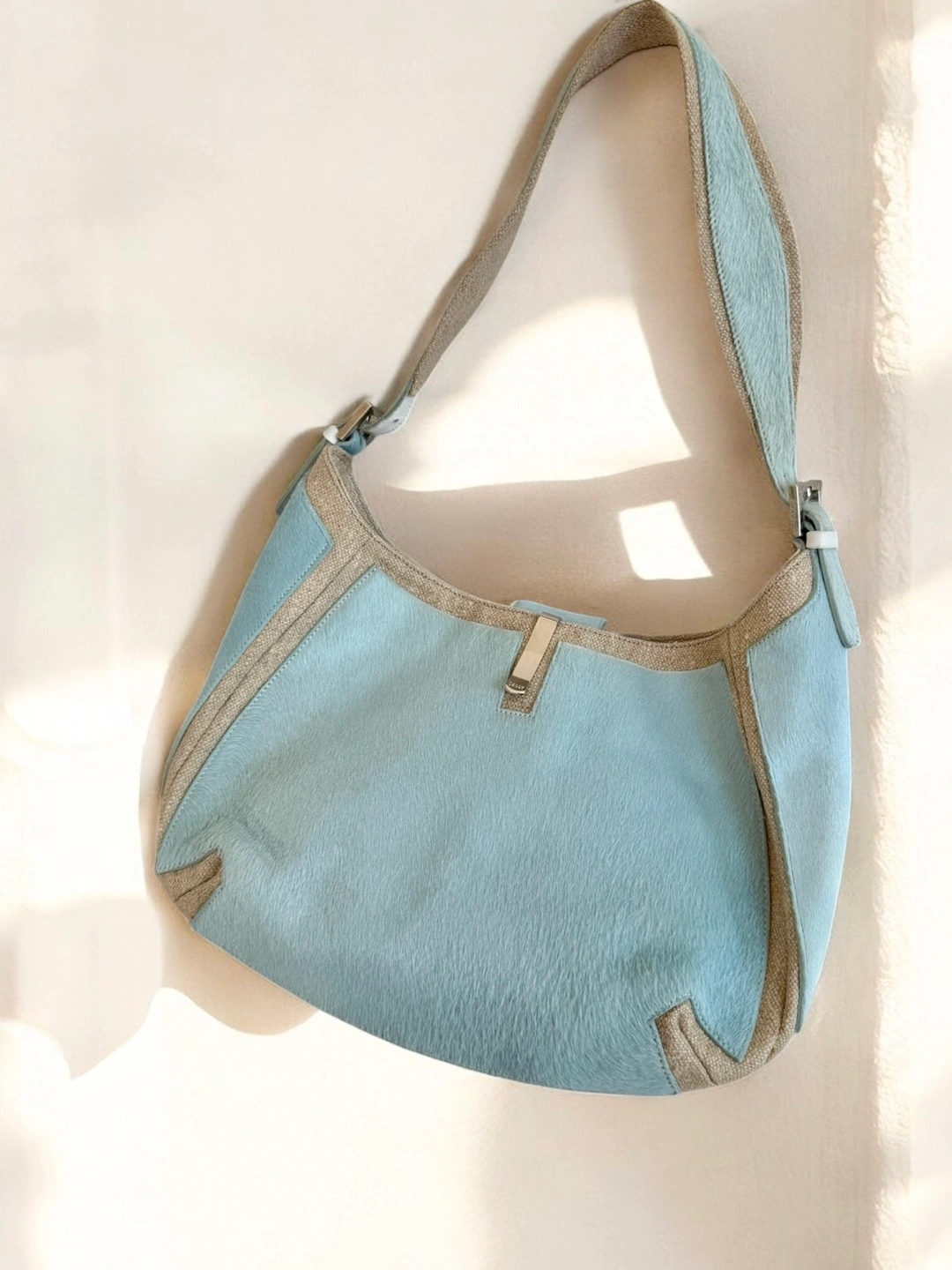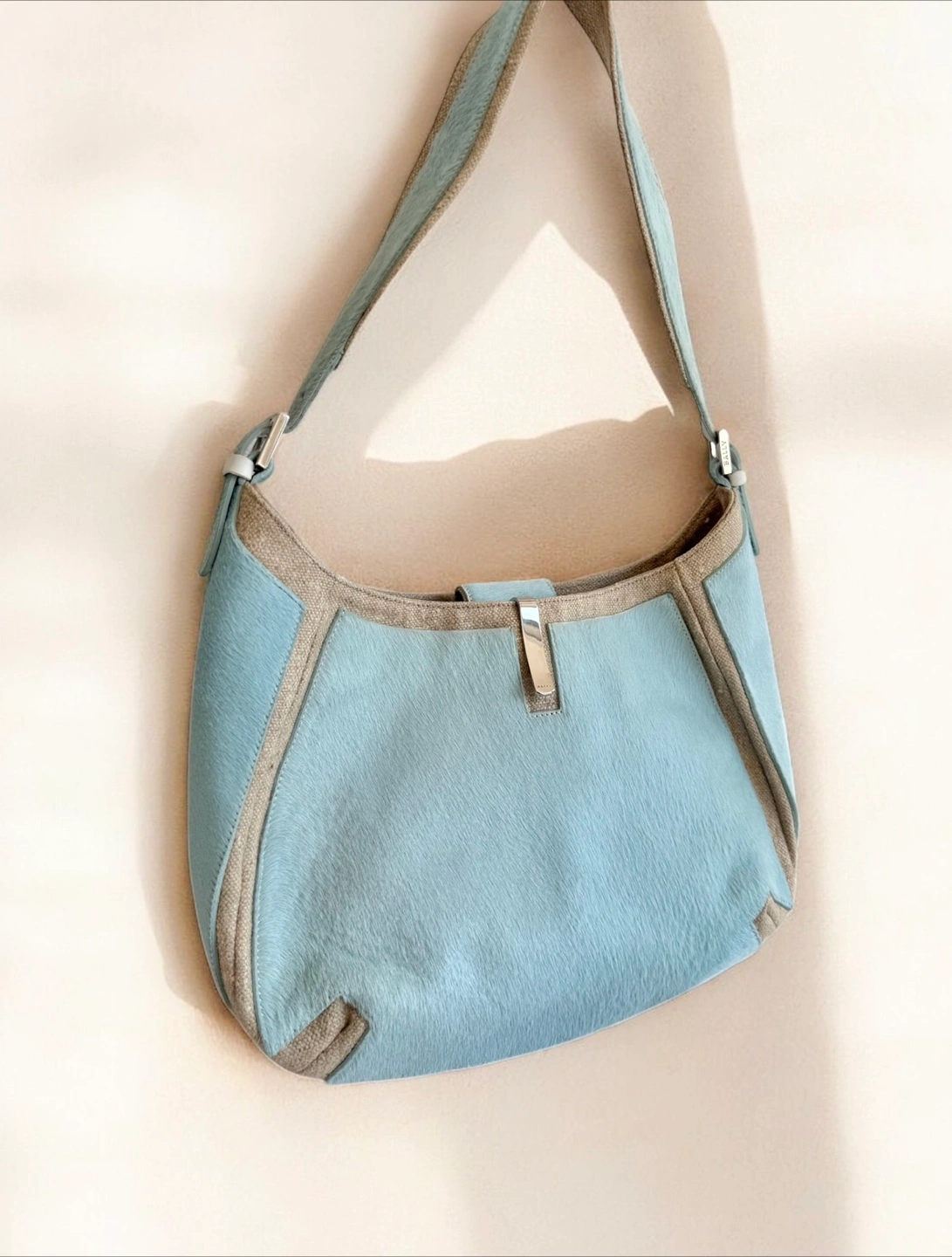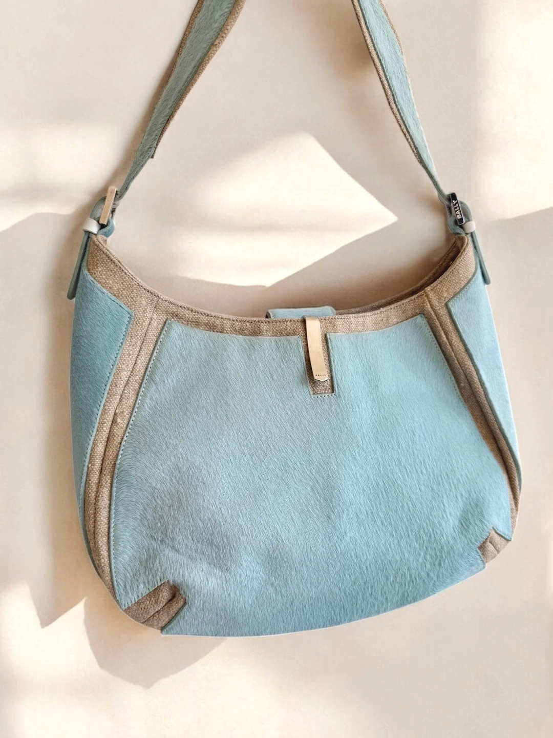 Such a luxurious and unique find for a fashion girlie π©΅ Powder blue pony hair vintage Italian shoulder bag from Bally with contrasting trims in flax linen and gorgeous silver hardware. π¦ Such a dream and a perfect medium size for everyday. The hobo style is an incredible example of Italian modern minimalism meets grown up y2k. Includes an interior leather strap to clasp any keys, wallet, or accessories. β· Excellent condition with a pink mark on the shoulder strap pictured. Pristine interior lining, clean corners and no balding on the calf hair. β· 100% authentic. Designer items we source go through rigorous in-house + additional outsourced authentication processes. β· length: 12.5β, height: 10β, width: 2.5β π€ Find us on instagram at @kkachi.shop #vintageponyhairbag #vintagecalfhairbag #vintageshoulderbag #hobobag bally bag #italianleatherbag soft hobo bag linen bag quiet luxury 90s style y2k bag Celine bag retro minimalist