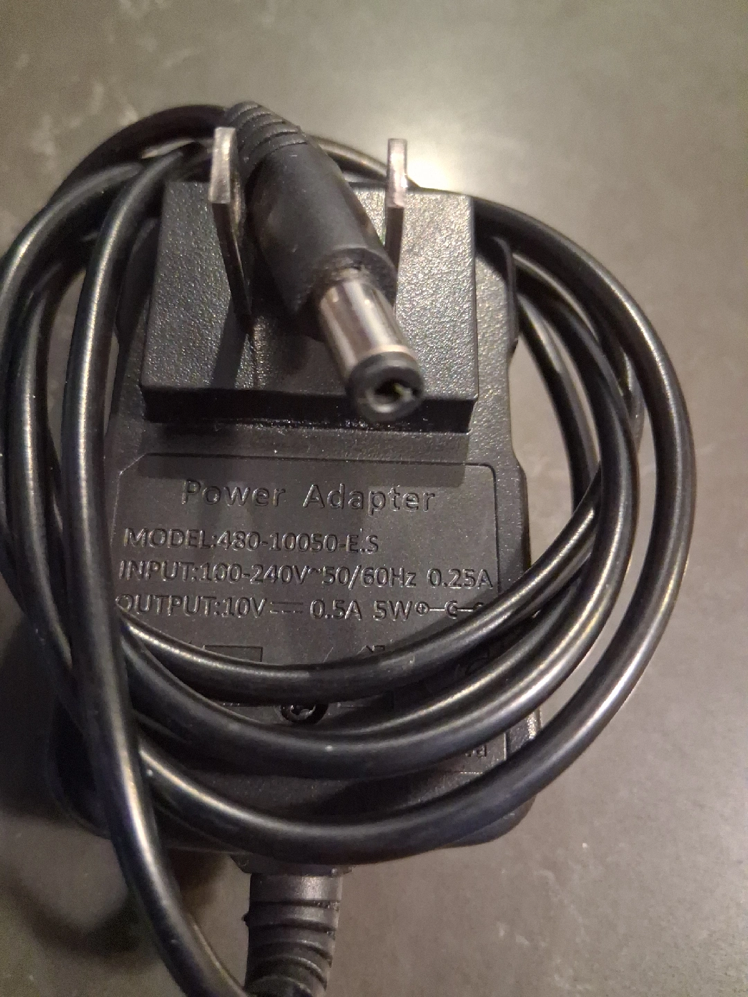 Selling various power adapters and cords. One is an AC Adapter, Model TPA-595050UU, Input: 100-240V~50/60Hz 0.2A, Output: 5V - 1000mA. Another is a Power Adapter, Model: 480-10050-E.S, Input: 100-240V~50/60Hz 0.25A, Output: 10V - 0.5A 5W. $10 each
