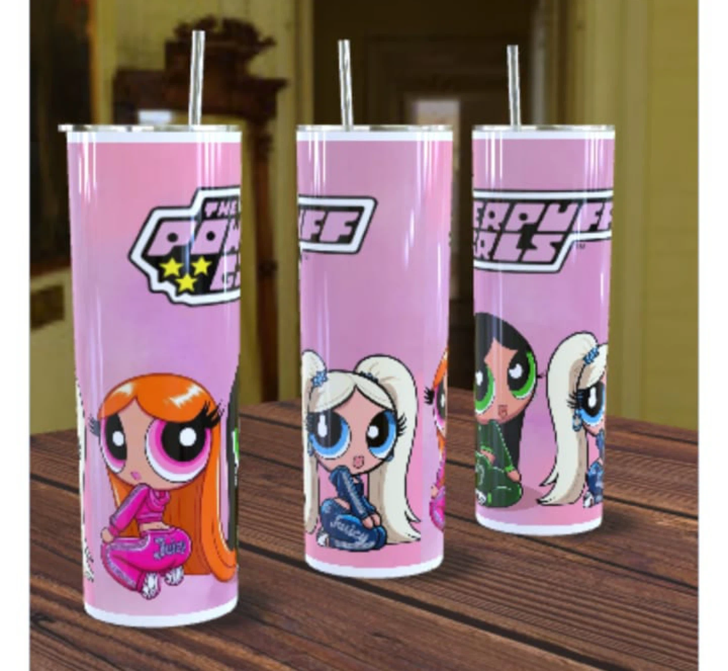 Cute Powerpuff Girls tumbler! Perfect for keeping your drinks cold on the go. Features Blossom, Bubbles, and Buttercup. Comes with a straw!