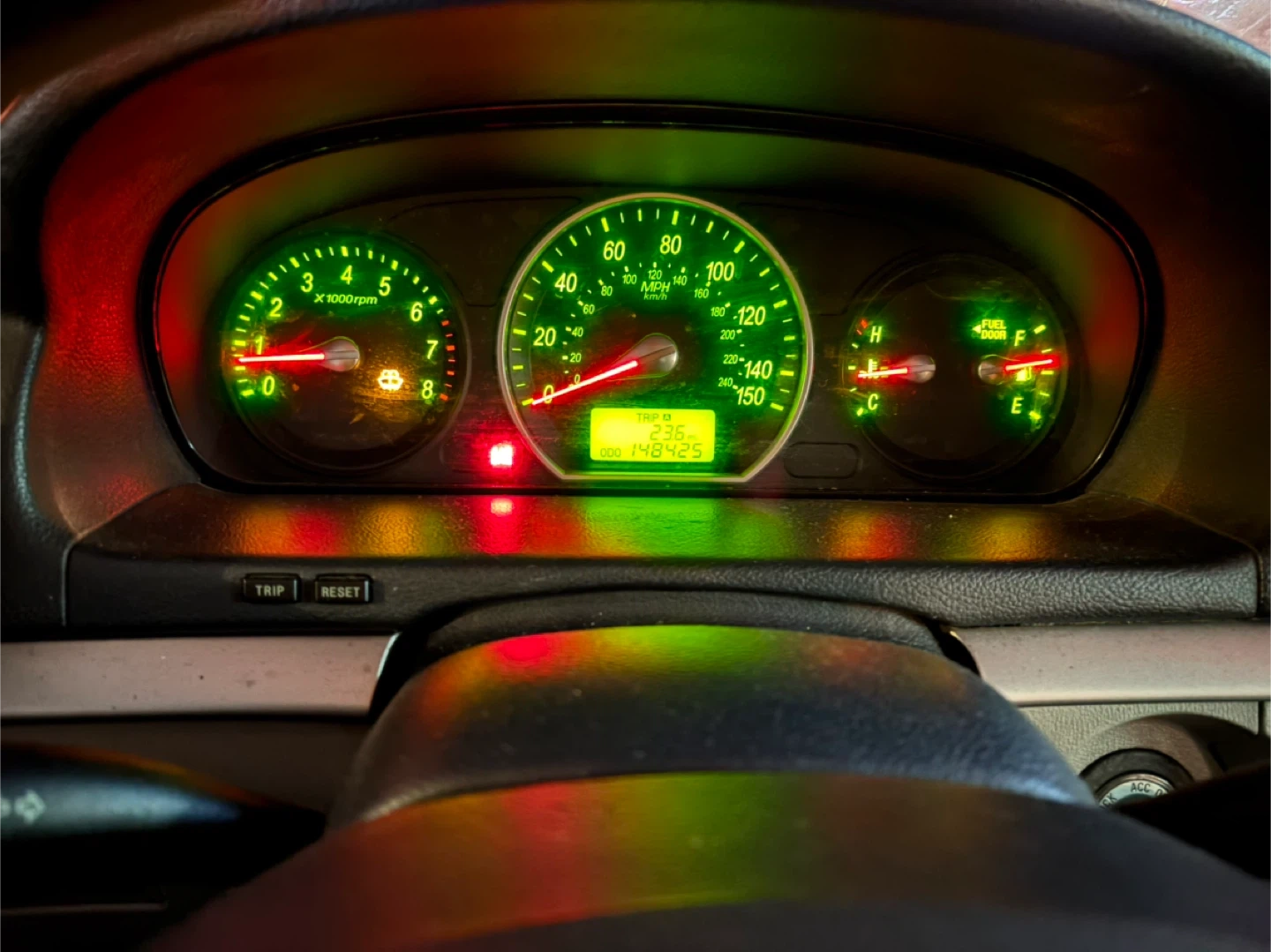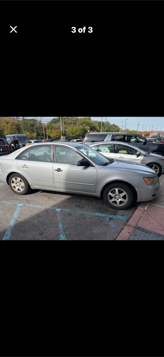This is a silver Hyundai Sonata sedan. It features a functional car stereo system and a clear digital display on the dashboard. The odometer shows 148,425 miles.sold as is