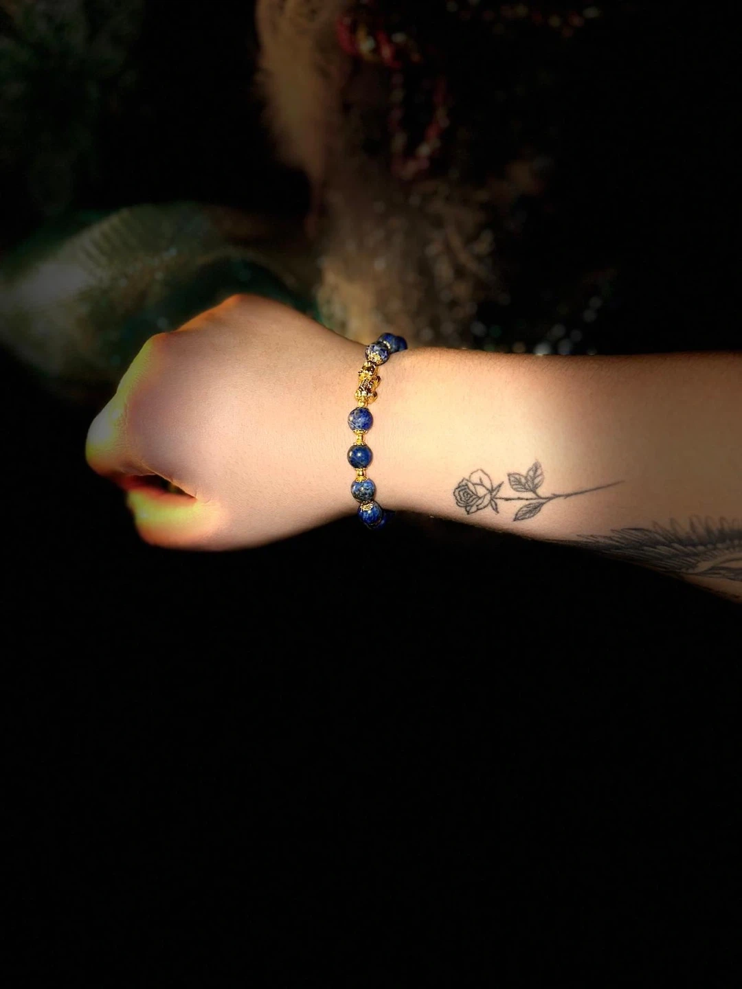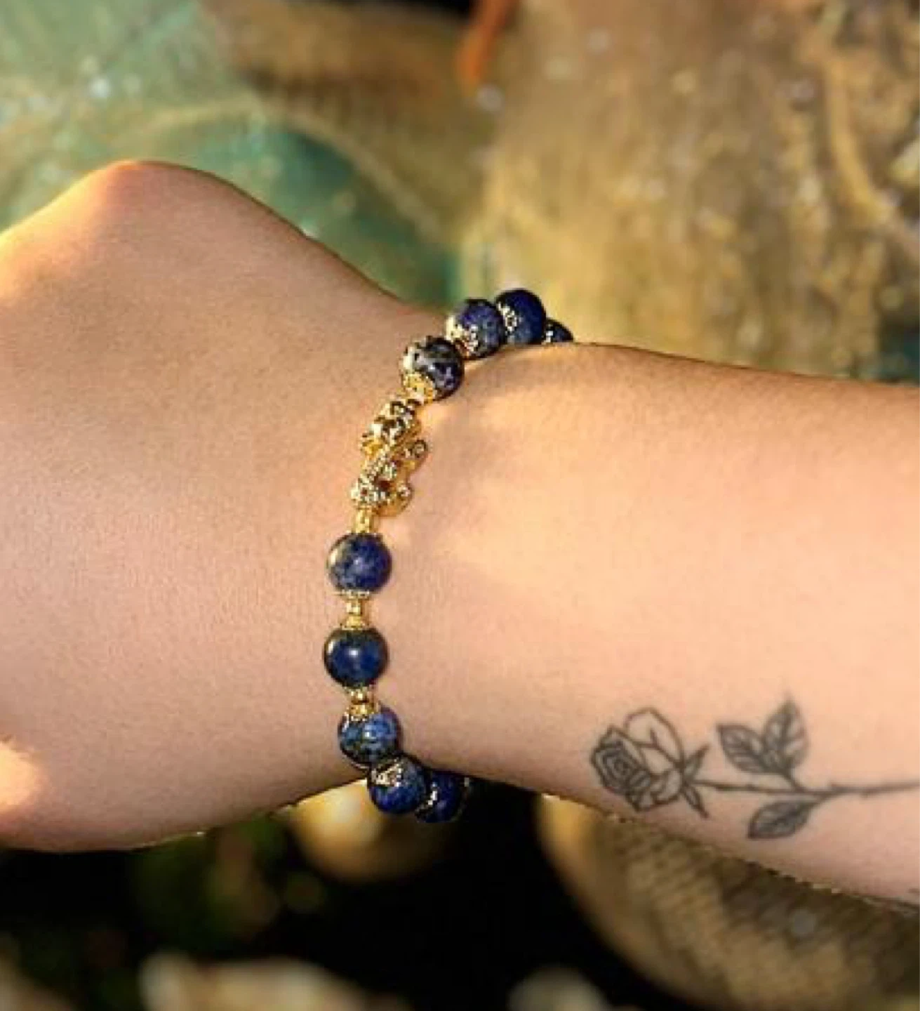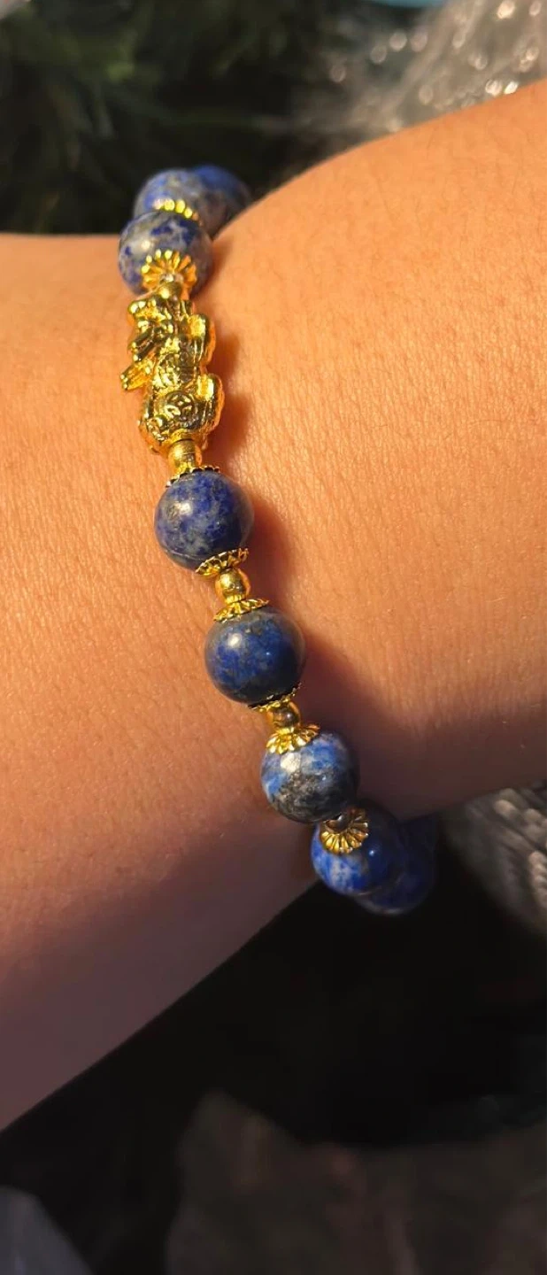 Selling a beautiful blue beaded bracelet! The beads have a lovely texture, and the gold-colored accents add a touch of elegance. It's a unique piece that would make a great addition to any jewelry collection
