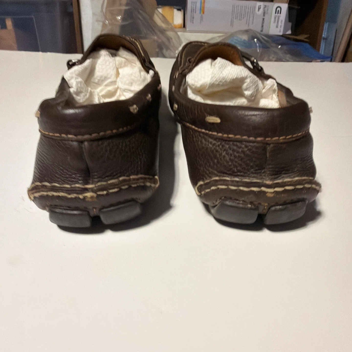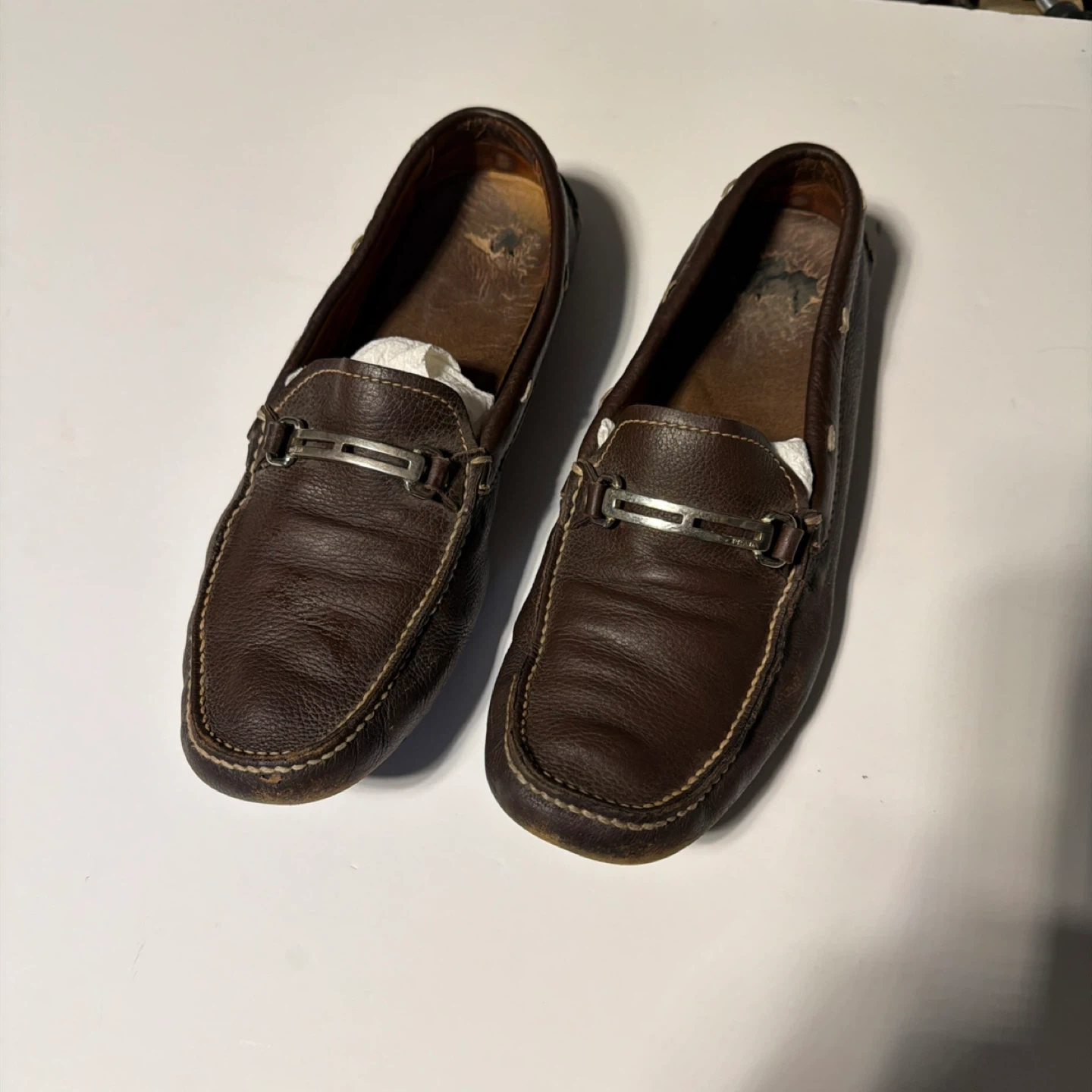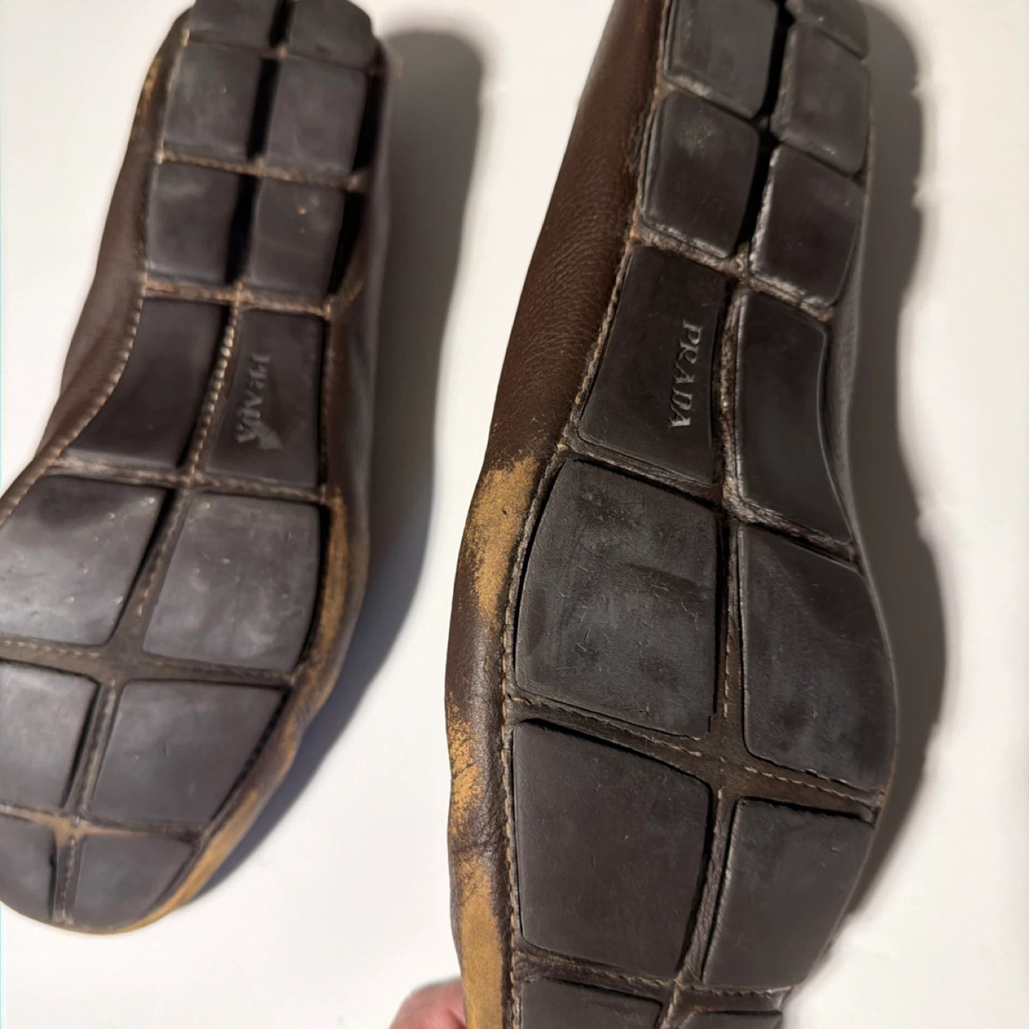 261Selling a pair of Prada brown leather loafers. They show some signs of wear, as pictured, but still have lots of life left! Perfect for adding a touch of style to your everyday look