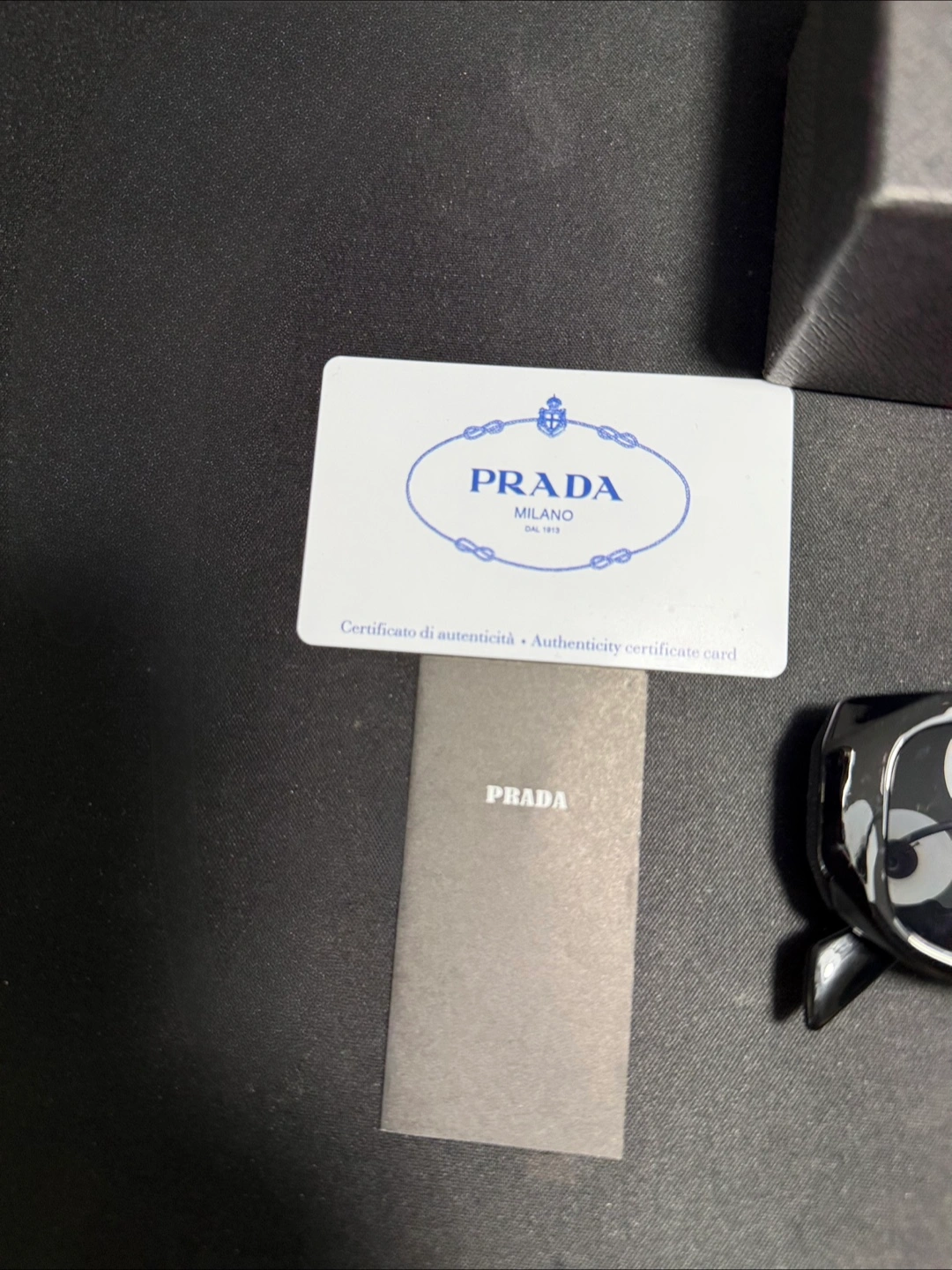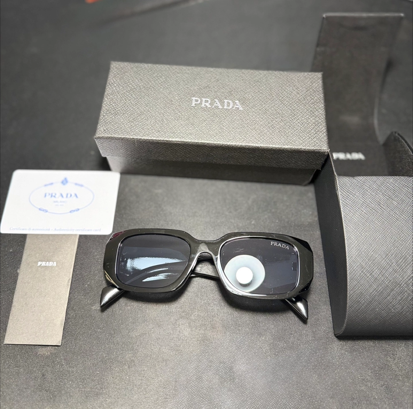 10Selling a pair of Prada sunglasses, model SPR17WS in black. They come with the original box and case. The size is 49口20-145. These sunglasses are in great condition and ready for a new owner!