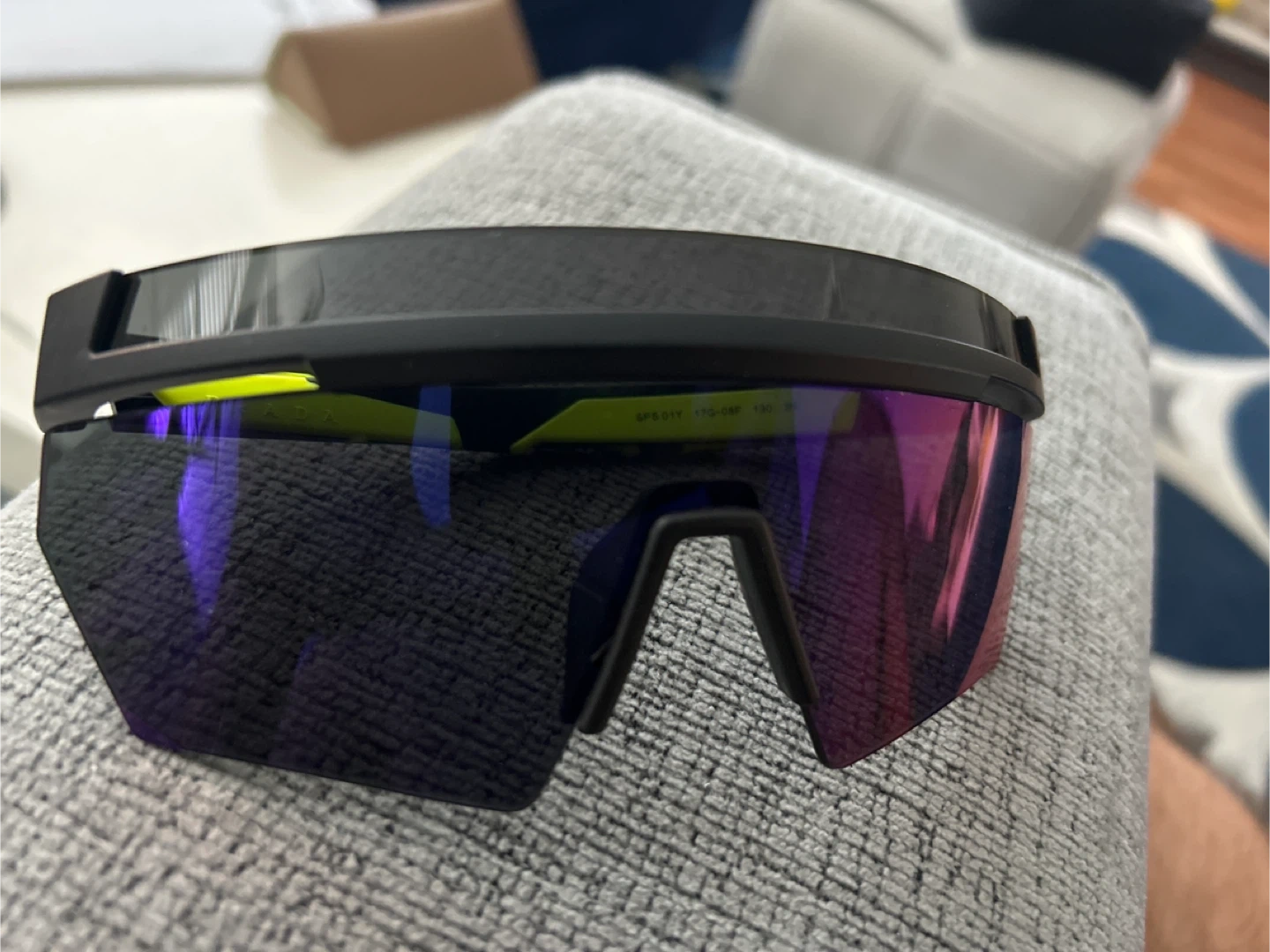 Selling a pair of Prada SPS 01Y sunglasses! They have a sleek black frame with a red and yellow accent. Great for adding a touch of style to any outfit