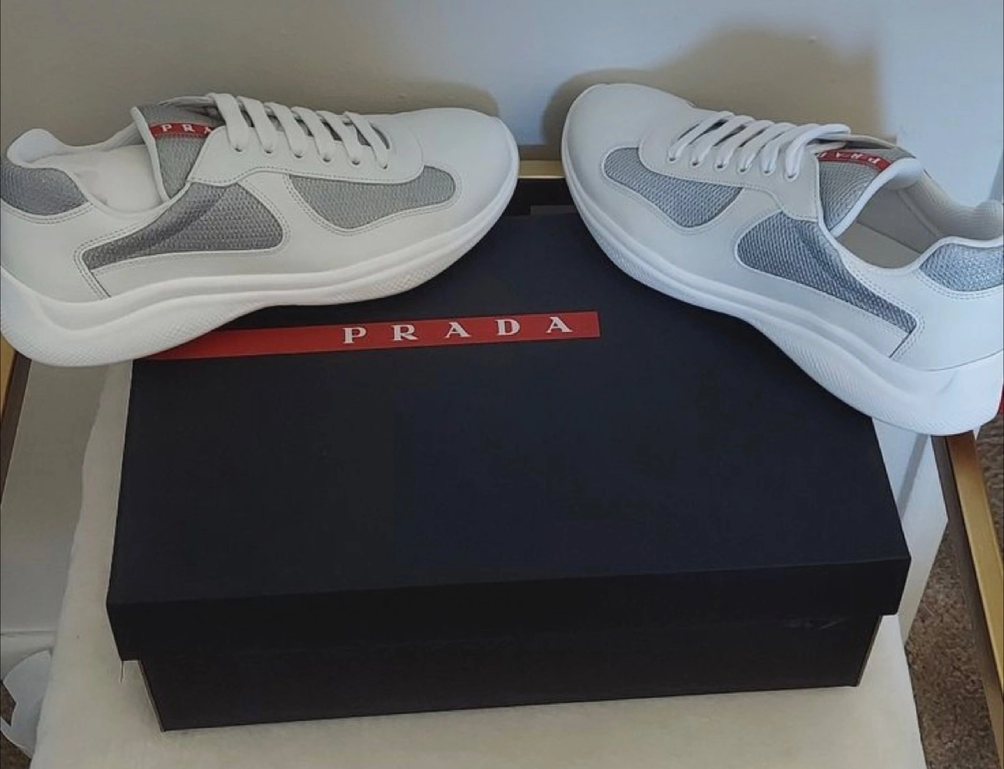 Selling a pair of Prada sneakers in white and gray! They are in great condition and come with the original box. These stylish sneakers are perfect for everyday wear and add a touch of luxury to any outfit