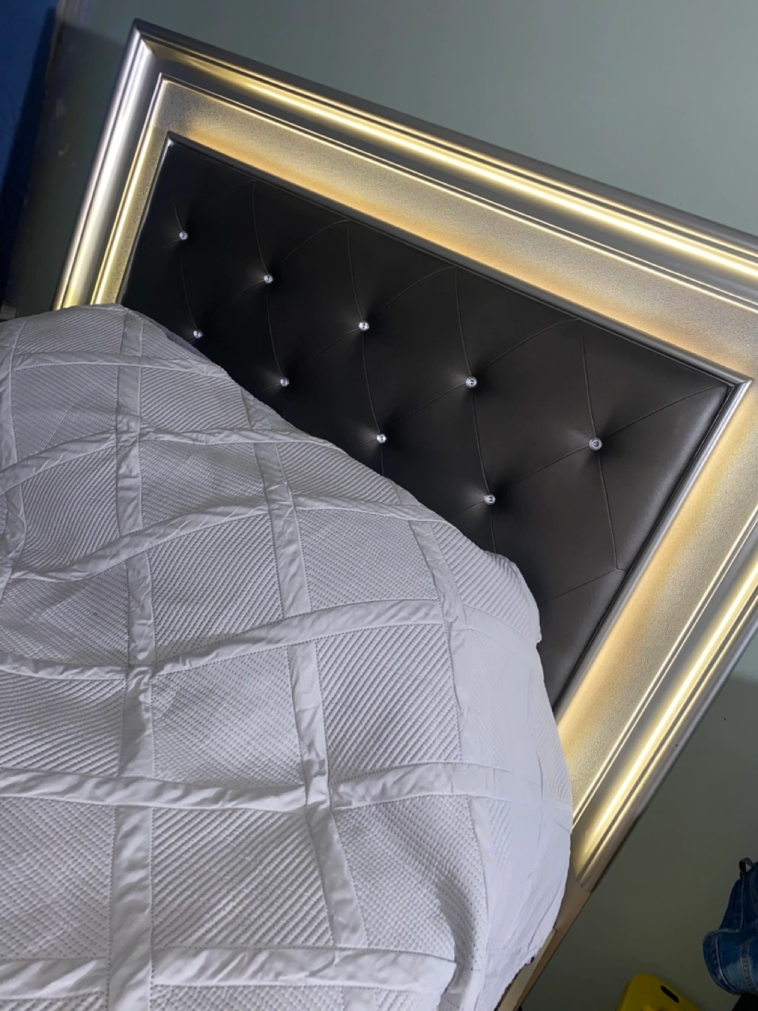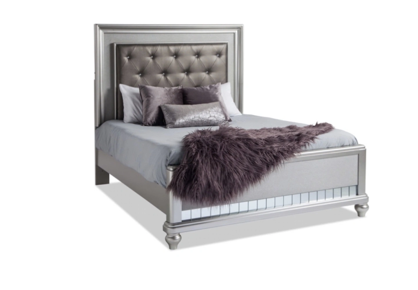 Modern Gray & Gold Vanity Set with Lighted Mirror and Stool
