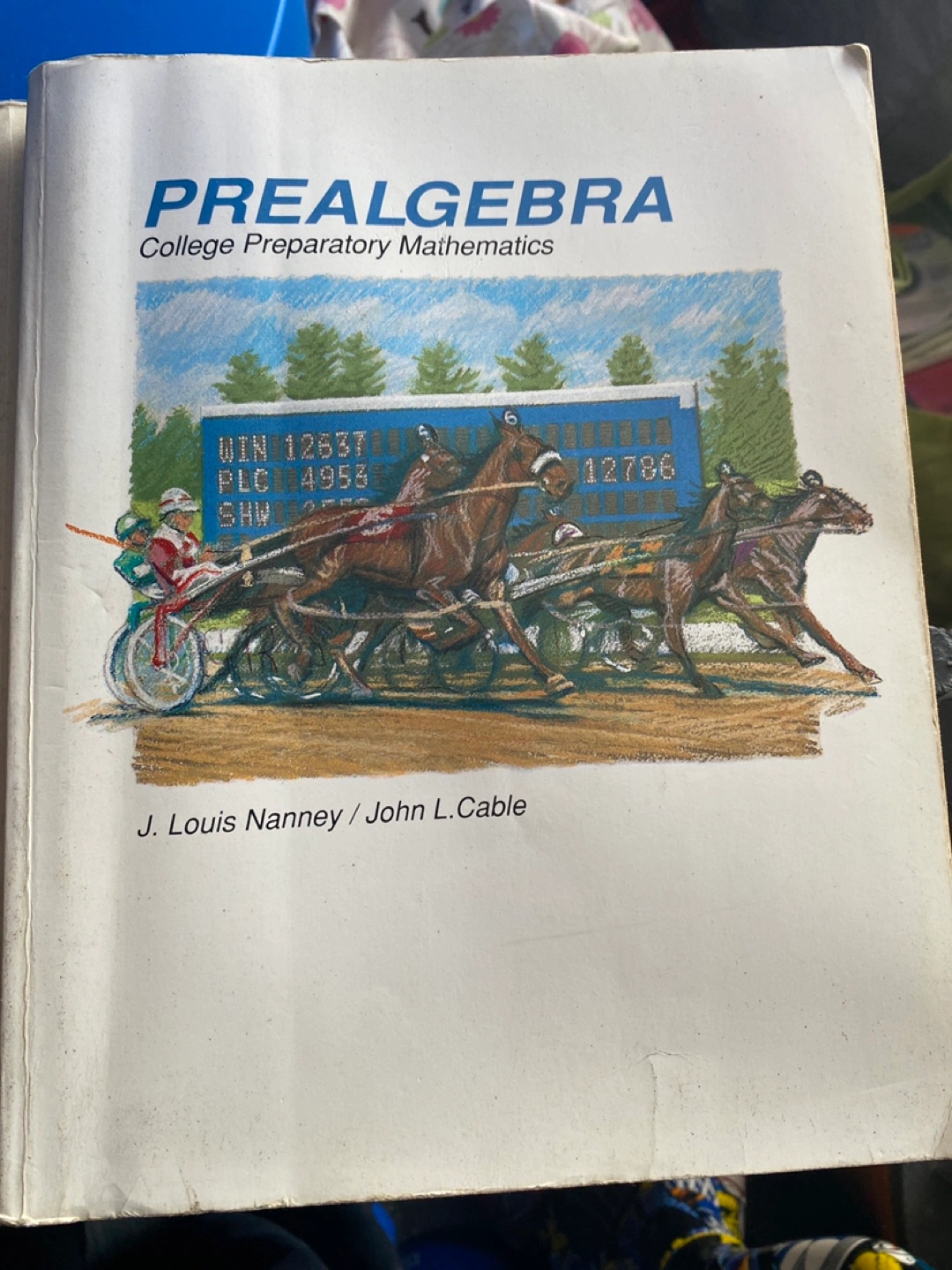 Prealgebra textbook. College preparatory mathematics. Authors J. Louis Nanney and John L. Cable. Shows some wear.