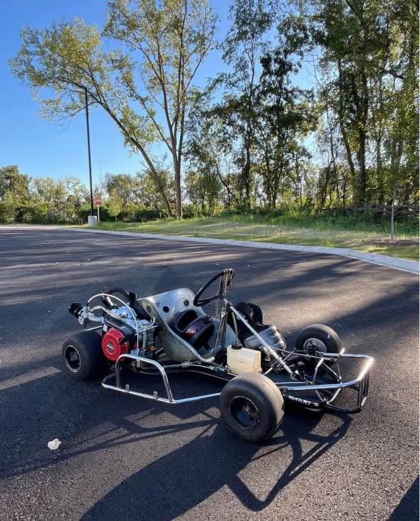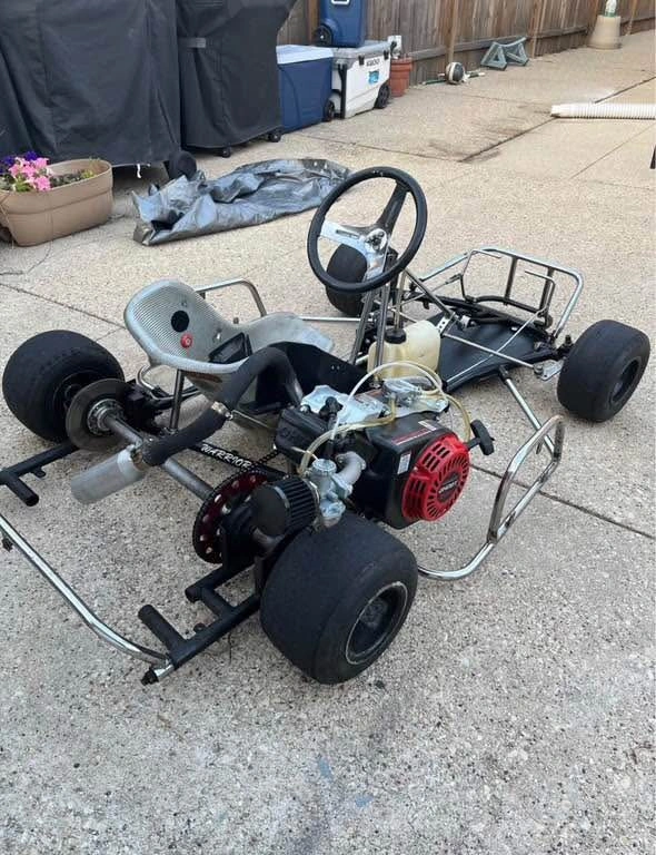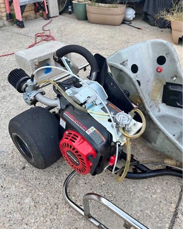 BRAND NEW Predator 212cc racing motor (only ran when building/0 hours brand new) Used Racing Gas Tank (with breather tube) Used Carbon Fiber Race Seat New Heat Wrap for the Exhaust Brand New Custom Exhaust (was cut into 3 pieces and welded to ensure no burns while in the seat of the kart) New Heat Shield for the Clutch/Engine/Chain New Throttle Cable New Brake System New Sprocket and Chain New Gas Pedal New Lightweight Heavyduty Skid Plate Used Brake Pedal Used Like New Brake Pads Used Tires 1700 OBO