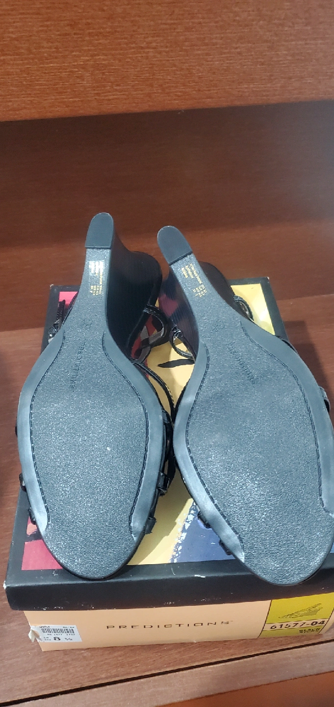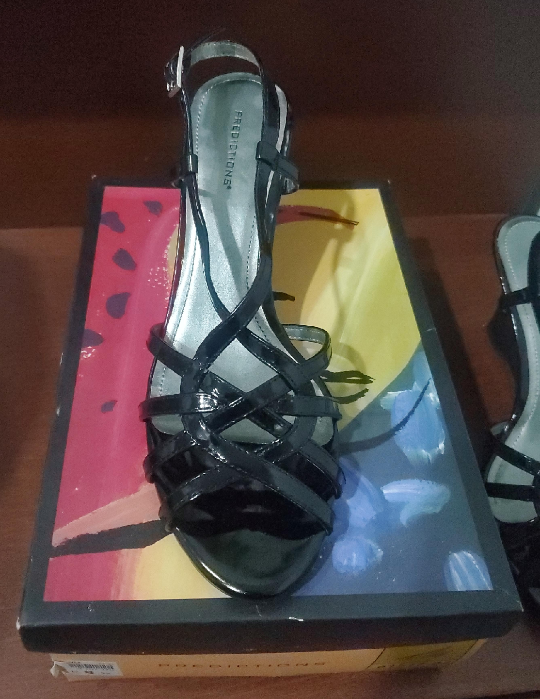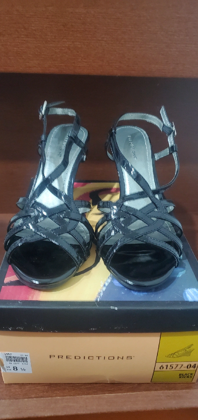 10These are a pair of black strappy heels from Predictions. They are a size 8.5 and come with the original box. They're in great shape and ready for a new home!