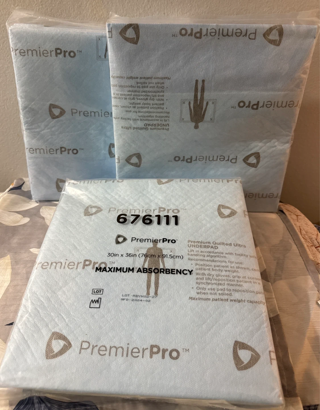 65I'm selling PremierPro Premium Quilted Ultra Underpads. They are 30in x 36in (76cm x 91.5cm) and offer maximum absorbency. They are designed for positioning patients and can be used to reposition patients when not soiled