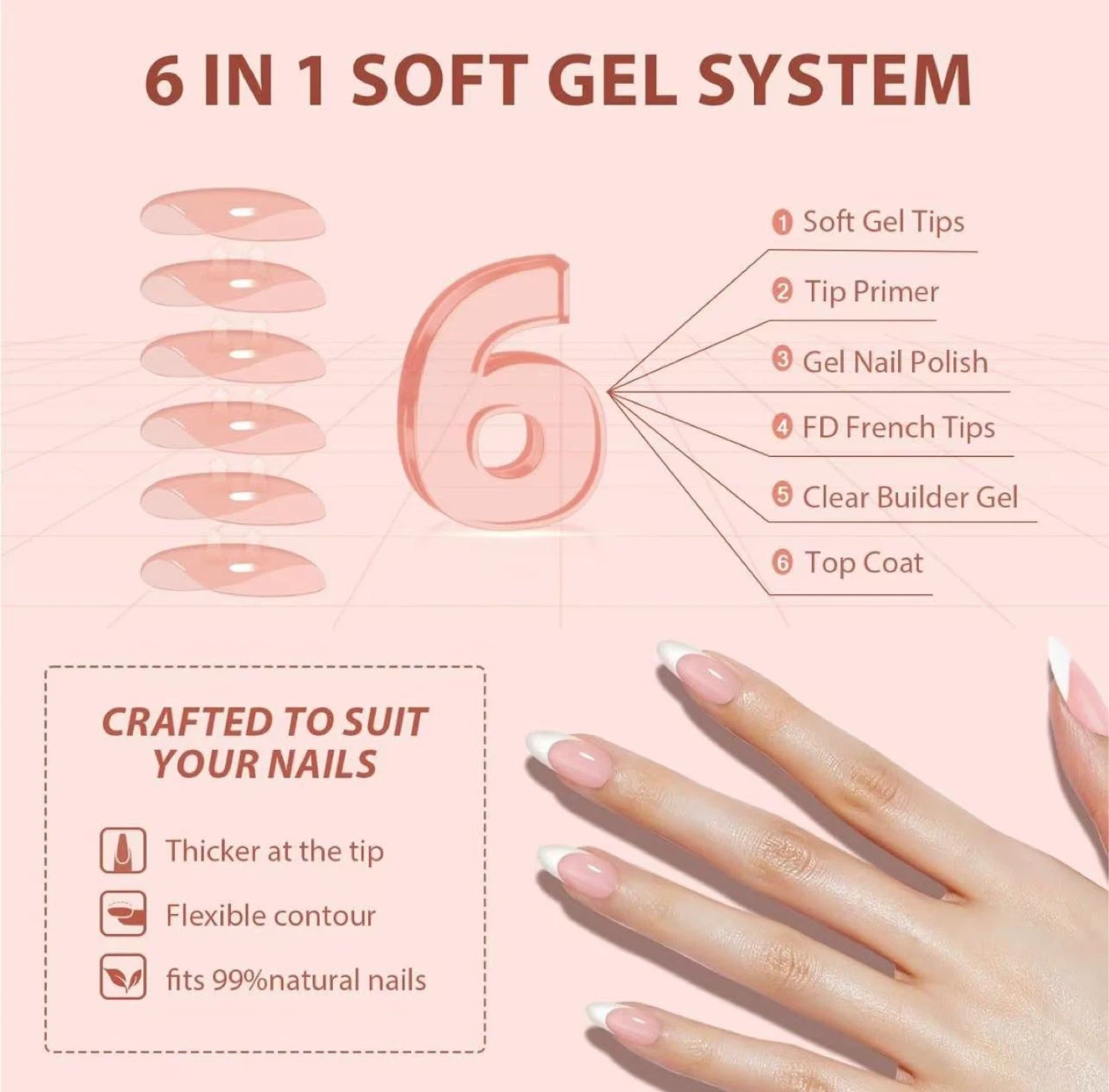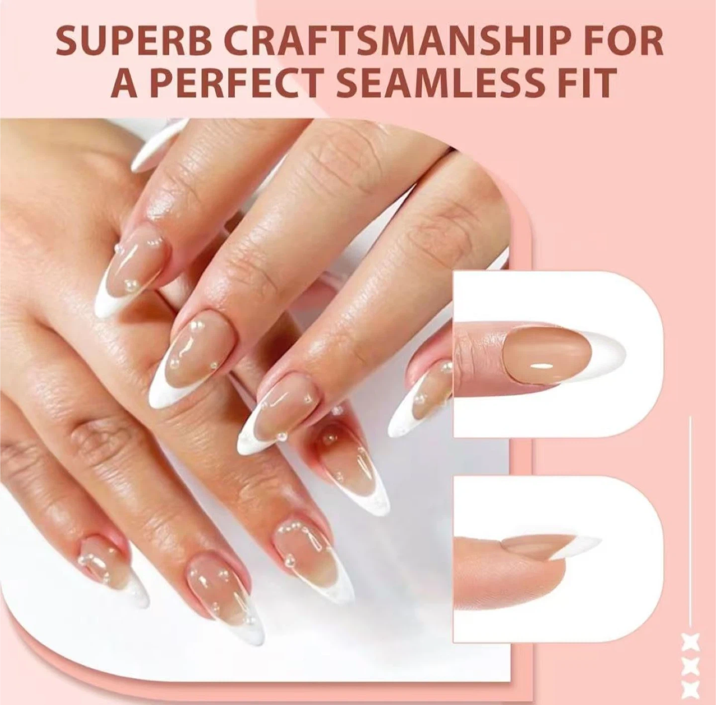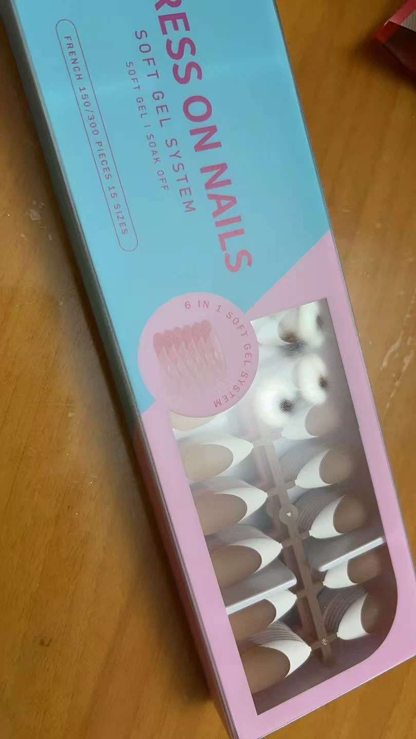 60French Gel Nail Tips - Press on Nails Pink Medium Almond Pre-applied Tip Primer & Base Coat, No Need to File Fake Nails for Nail Art DIY Gifts,Five Colors,15 Sizes