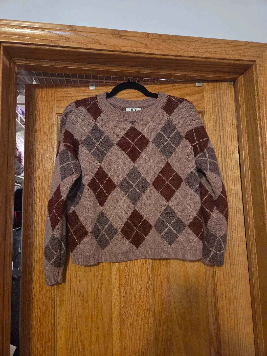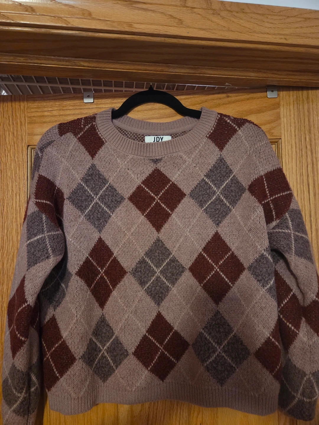 47Selling a Jdy Argyle Sweater. It is a brownish pink, gray, and burgundy argyle pattern. Great for the fall and winter season! Pickup in Uptown.