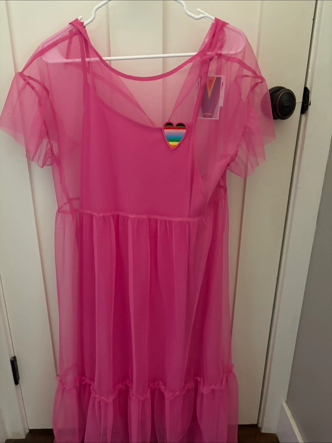 Selling a cute PRIDEO pink ruffle dress in size medium! It's made of a sheer, lightweight material and has a fun, flirty look. Originally bought for $35!