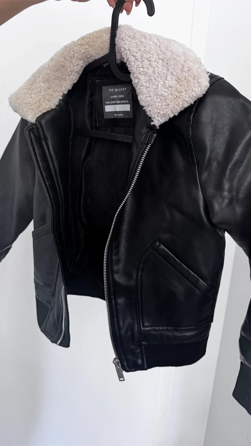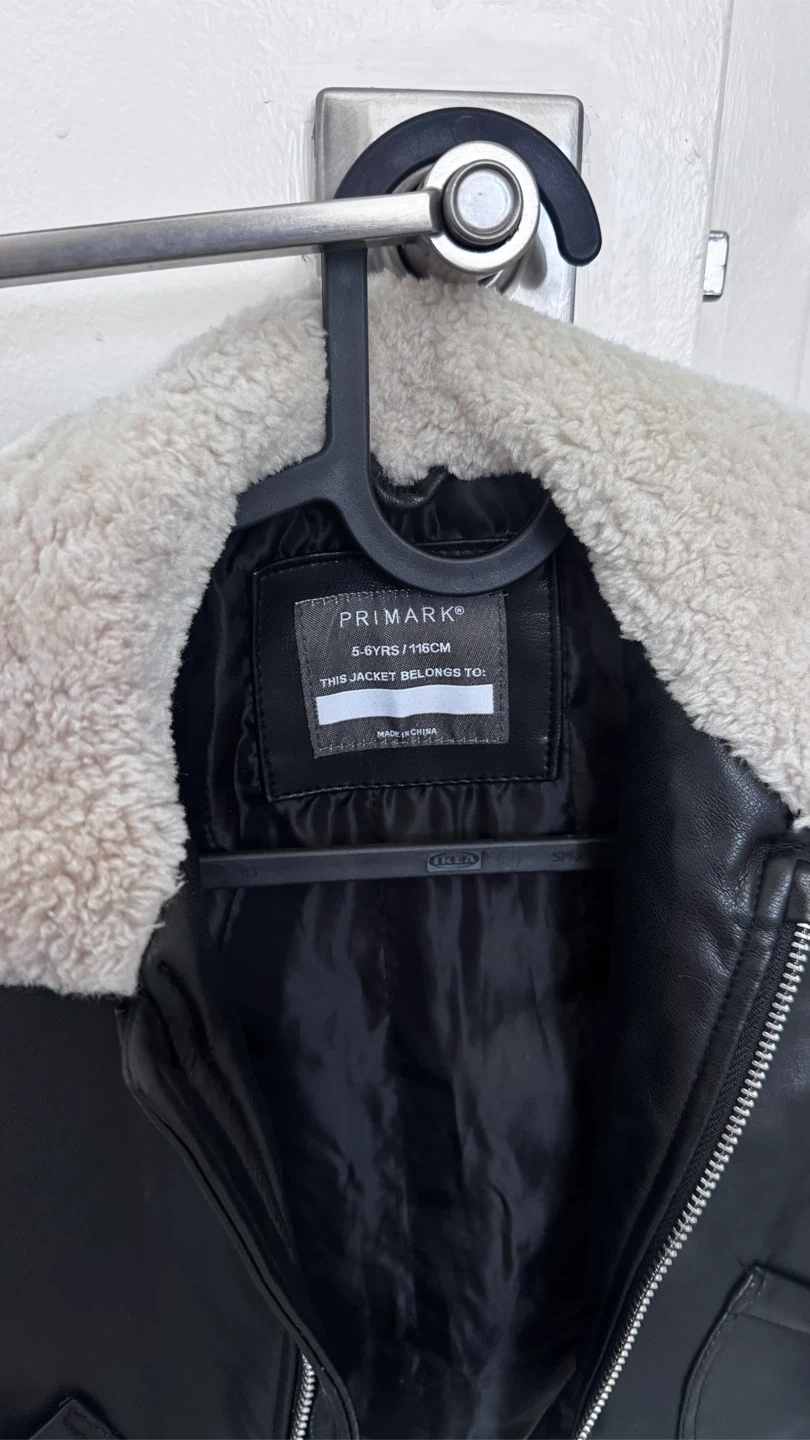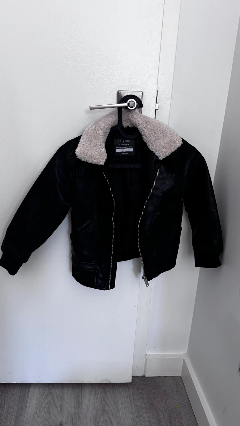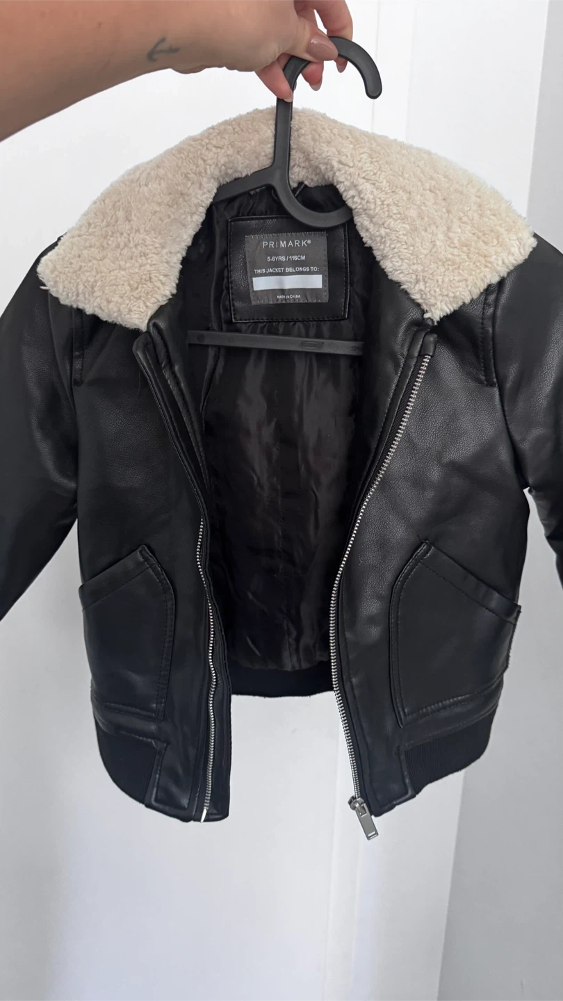 10This is a black jacket from Primark in size 5-6 years (116cm). It has a faux fur collar and is in new condition!