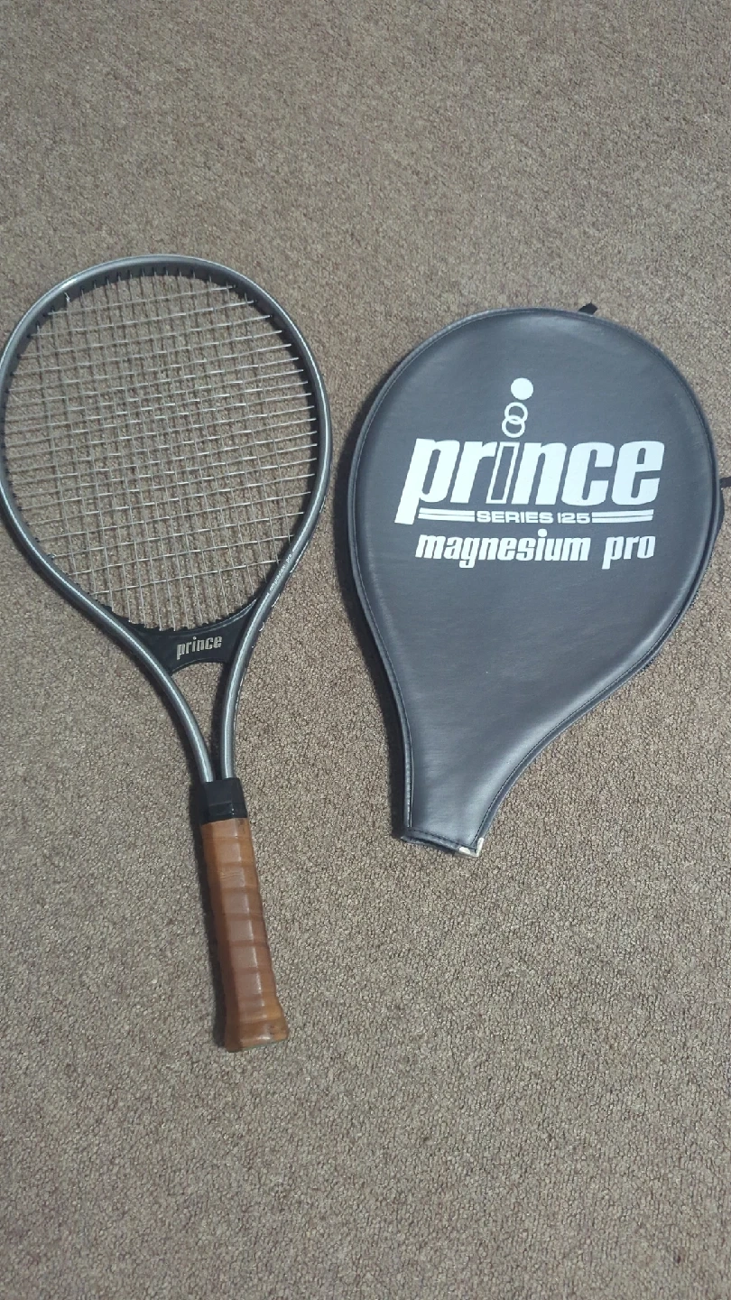 74Selling a Prince Magnesium Pro Series 125 tennis racquet with its original cover! The grip is a classic brown, and the racquet shows some signs of use but is still ready for the court