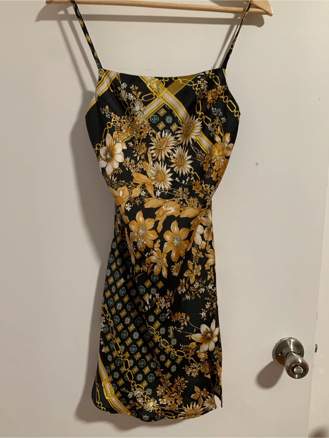 Princess Polly Black Satin Floral Mini Dress - Size 2