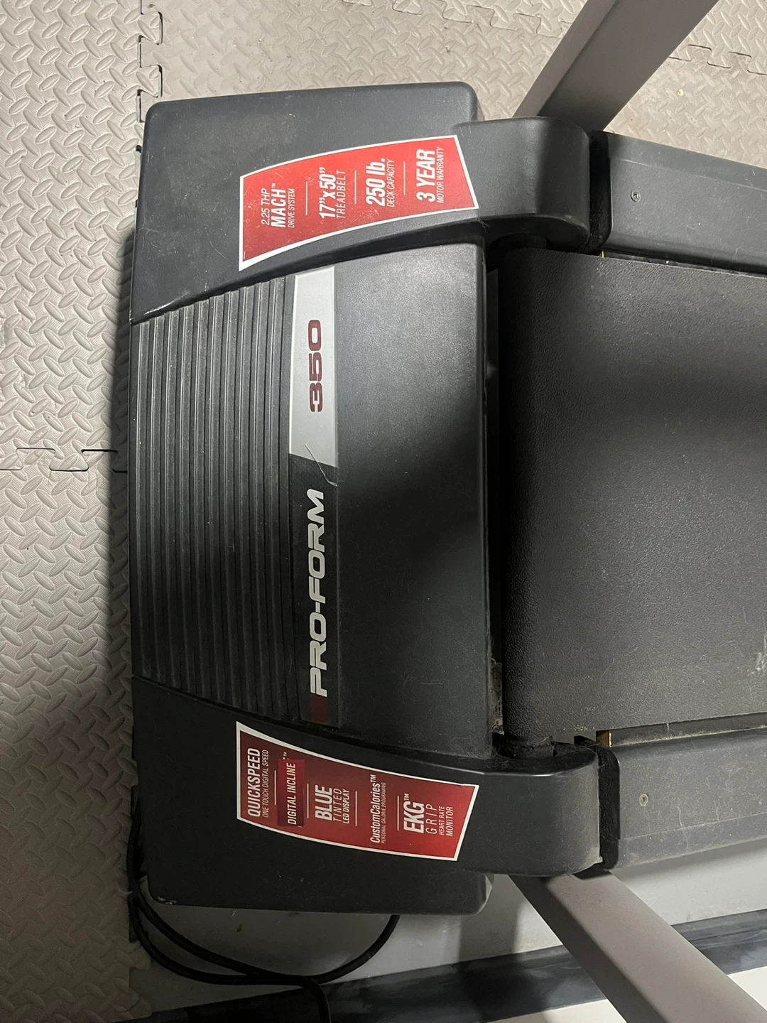 65Selling a Pro-Form 350 treadmill in great condition! It features a 17" x 50" treadbelt and a 250 lb weight capacity. It also has QuickSpeed and Digital Incline features. Perfect for getting your exercise in at home!