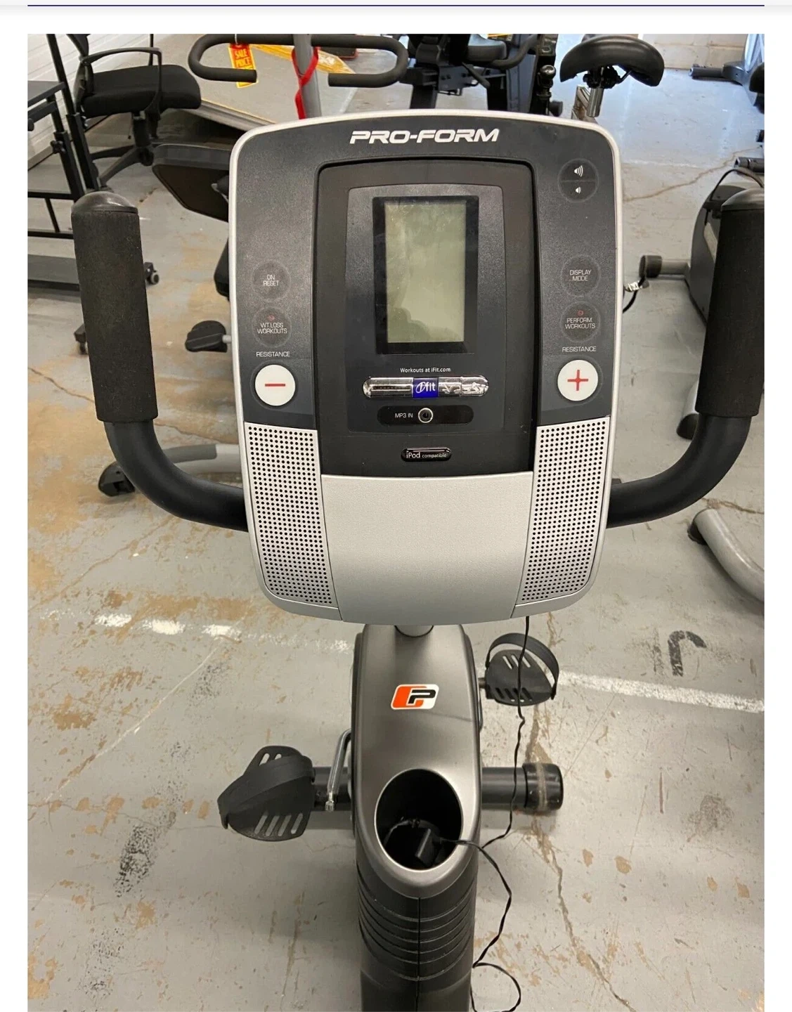 Selling a Pro-Form exercise bike. It features an iPod compatible music port and an LCD display. Great for getting a workout in at home!