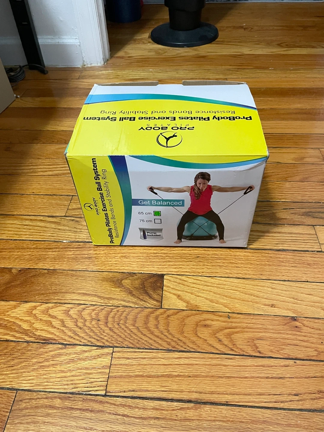 73Get balanced with this ProBody Pilates Exercise Ball System! It comes with resistance bands and a stability ring. Includes the 65 cm size. Pump included