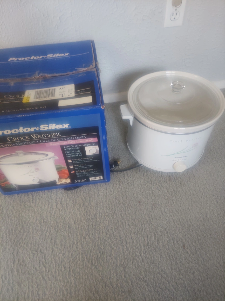 Buy & SellProctor Silex Crock Watcher Slow CookerProctor Silex Crock Watcher Slow Cooker$9Selling a Proctor Silex Crock Watcher slow cooker. It comes with the box. The model number is 33650.ConditionNewBrandProctor Silex0 chats·0 favorites·2 viewsSELLERFran francisCranford100 reviewsWHERE TO MEETKenilworth blvd