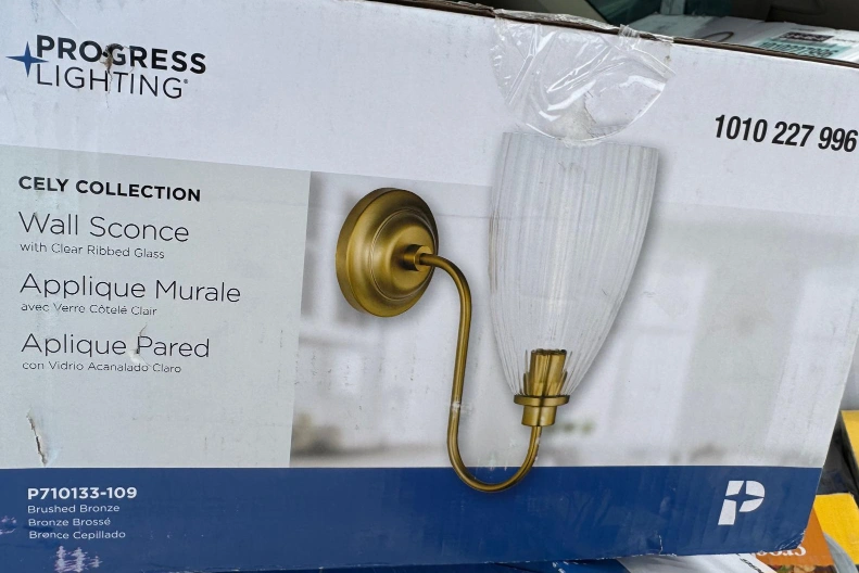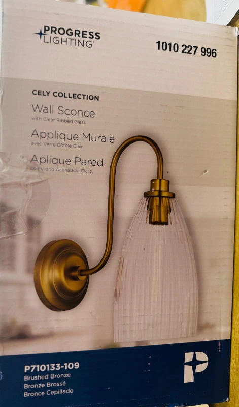 10A wall sconce with a clear ribbed glass shade. Finished in a brushed bronze color. Perfect for creating a cozy ambiance in any room of your home.