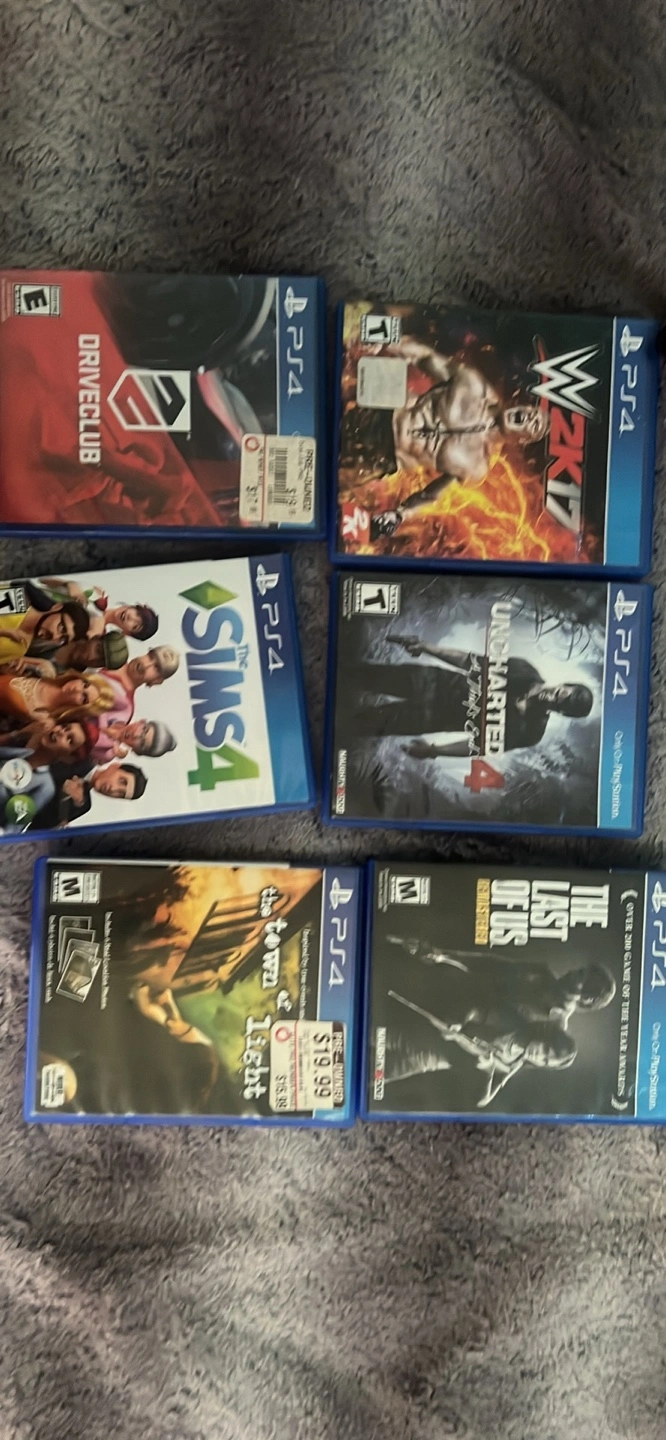 10PS4 console- 3 controllers-10 games. •Driveclub •GTA5 •Wwe2k17 •Assassins Creed Syndicate •Unchartered4 •Sims4 •The last of us • the walking dead •Street fighter Arcade edition •The town of light *Firm on price*Cash preferred