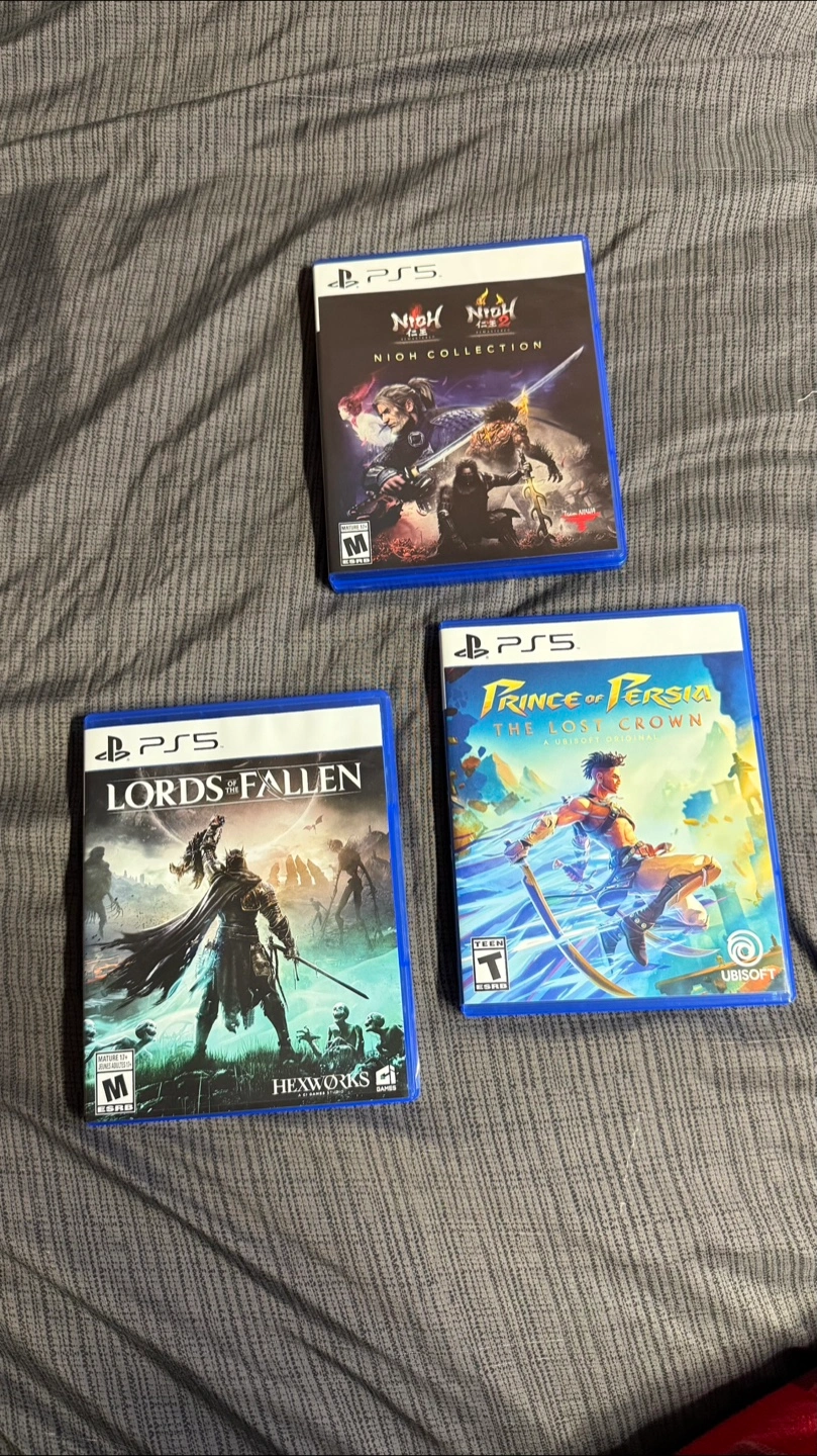 55Three PlayStation 5 games: Nioh Collection (Nioh and Nioh 2), Lords of the Fallen, and Prince of Persia The lost crown. All games are in mint condition. The price is for all the games.