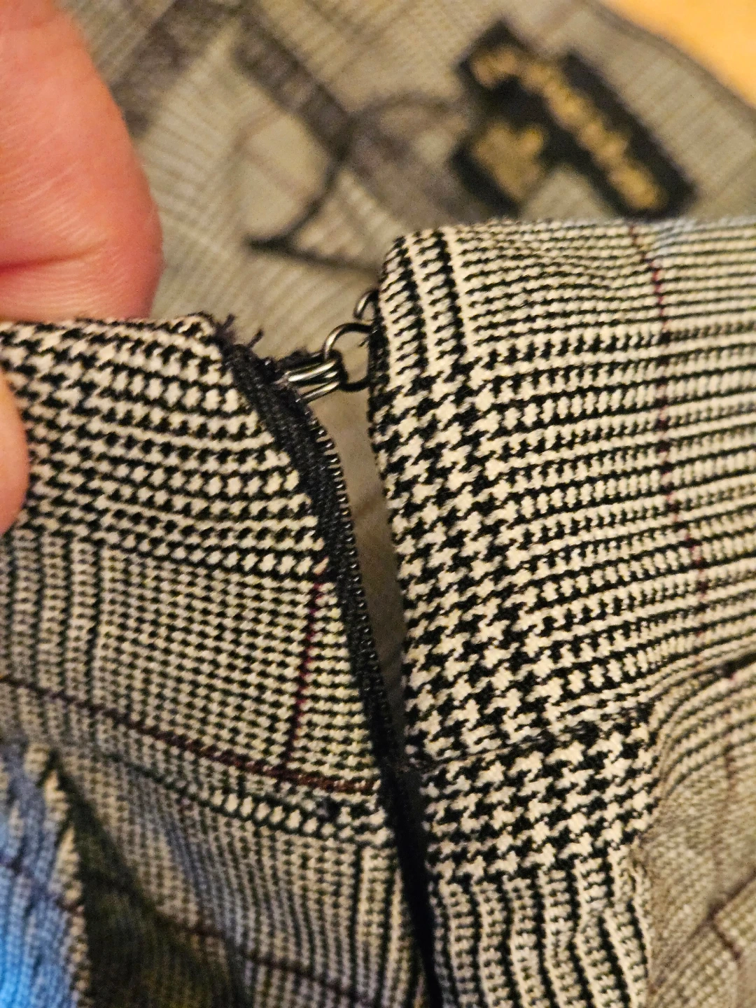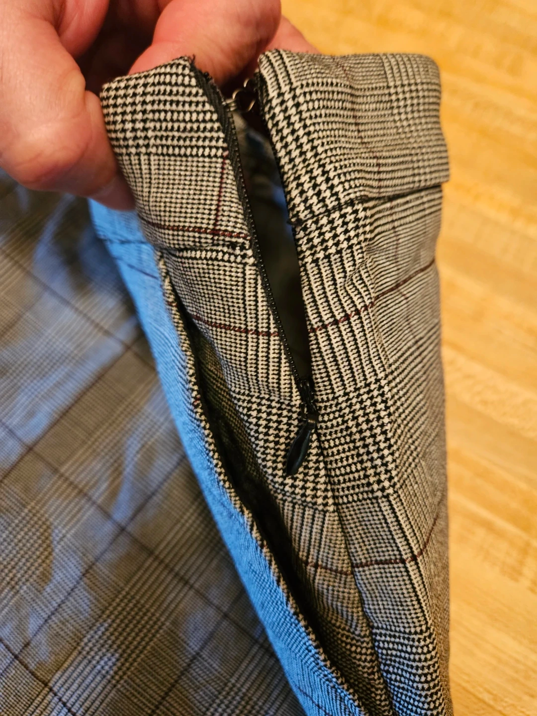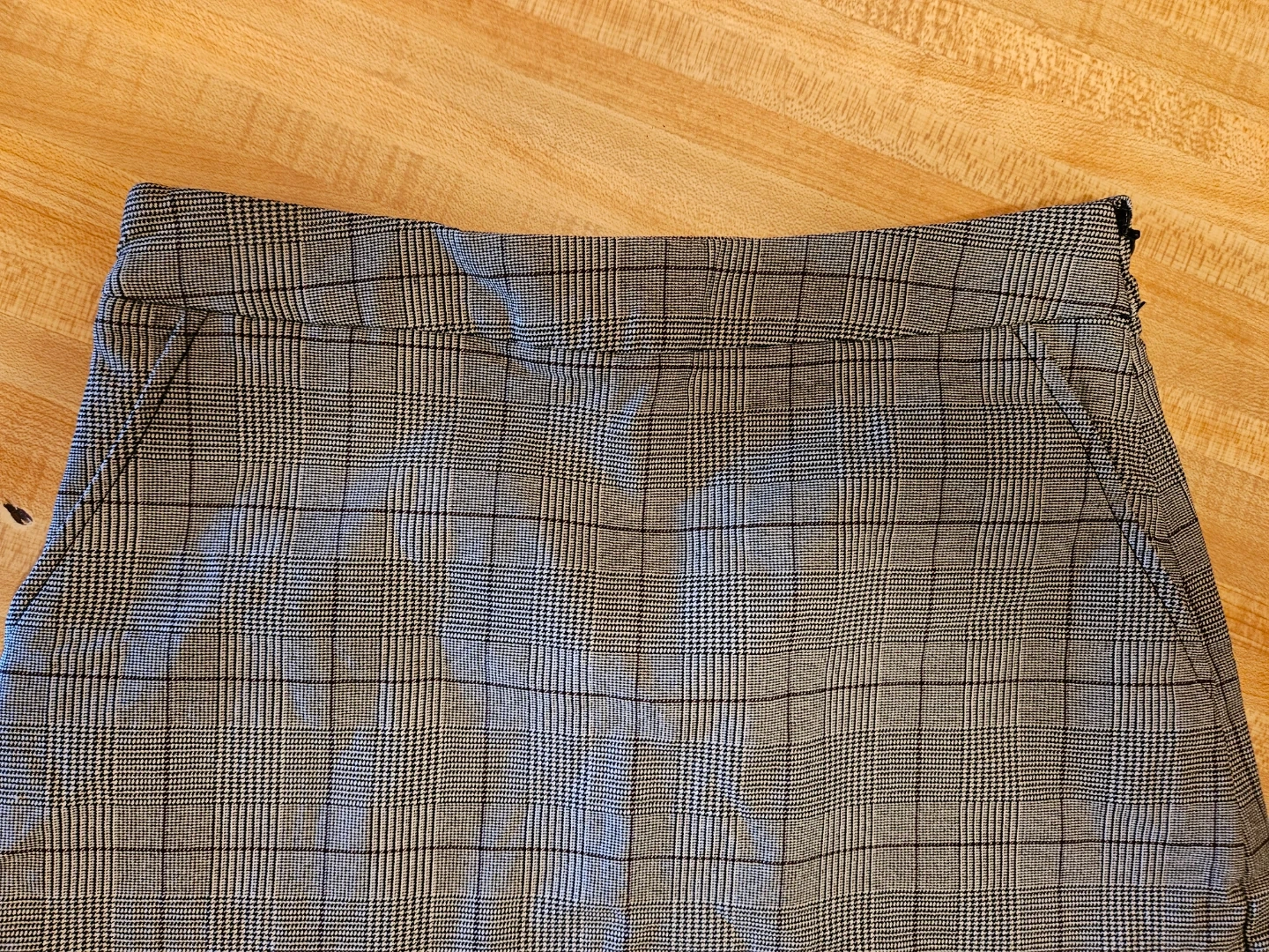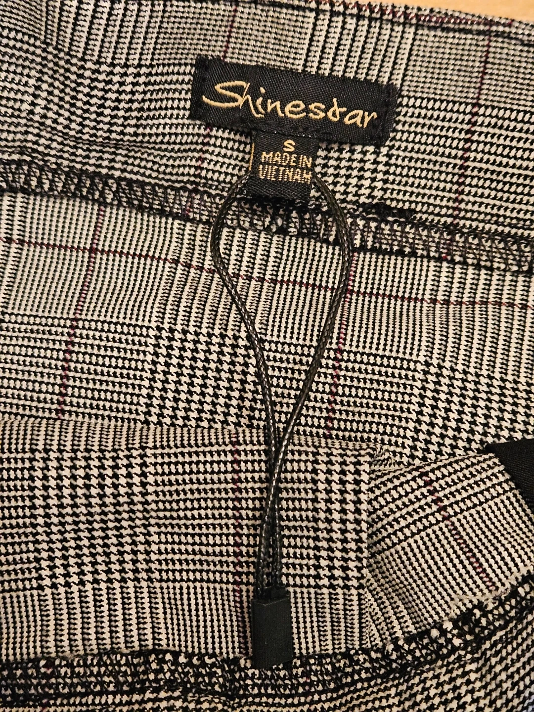 This is a plaid mini skirt with a zipper closure. Waist measures 15 inches flat, length is 18 inches. Made of polyester and rayon blend. Great for casual wear!