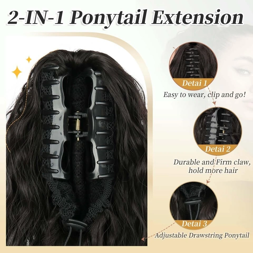 Vizfrucean Black Brown 30 Inch Wavy Claw Clip Ponytail Extension