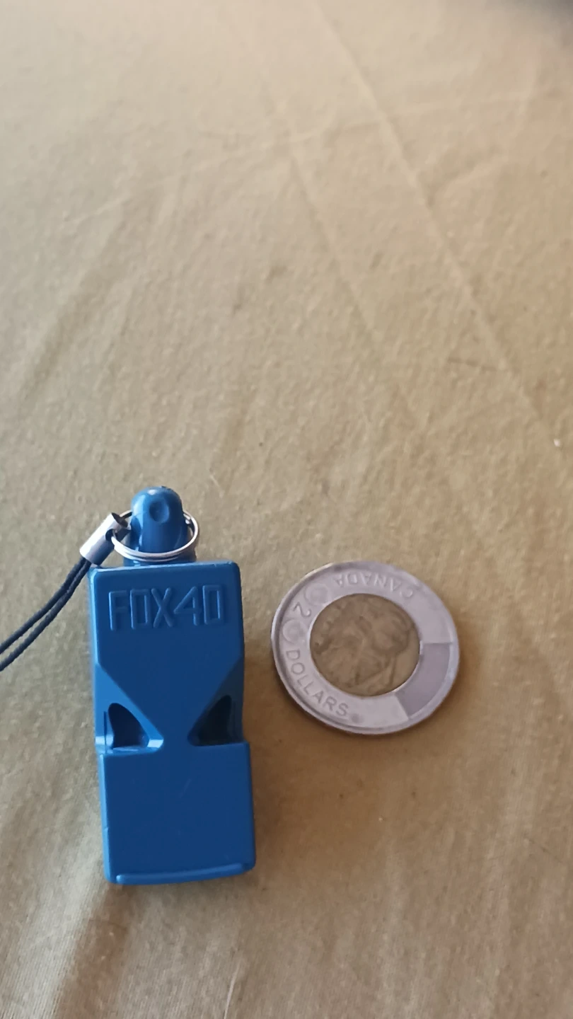 This is a blue Fox 40 whistle. It's designed for clear, loud sound. Comes with a convenient lanyard for easy carrying. Real model not fake/imitation version! Worth $15..