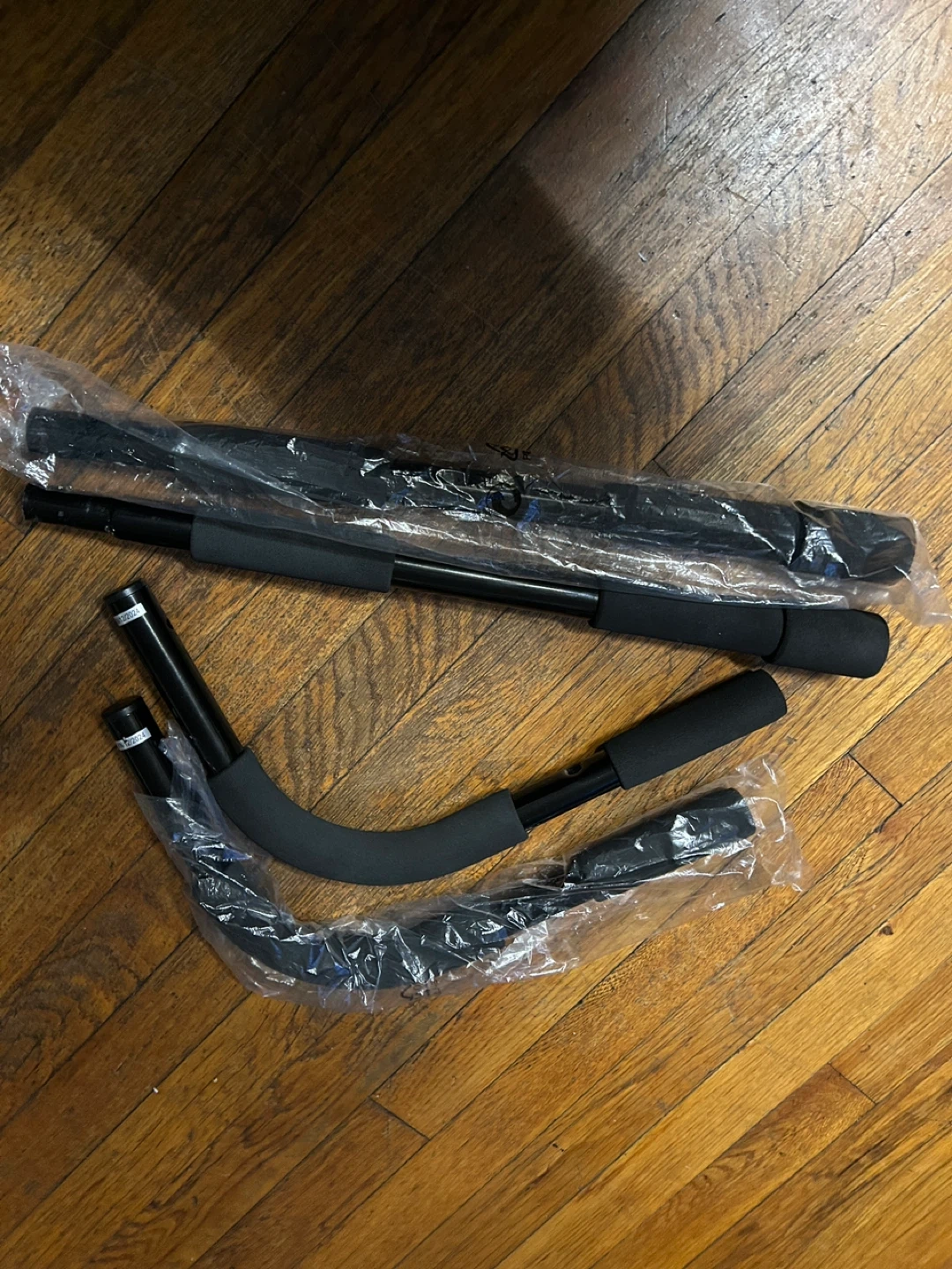 234Selling a pull up bar in its original packaging! It's black and ready to help you get in shape at home.