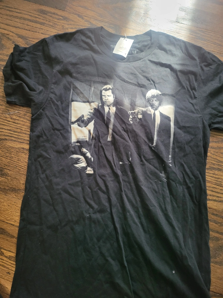 Black t-shirt. Featuring a graphic print. Crew neck design. A great casual shirt for any day.