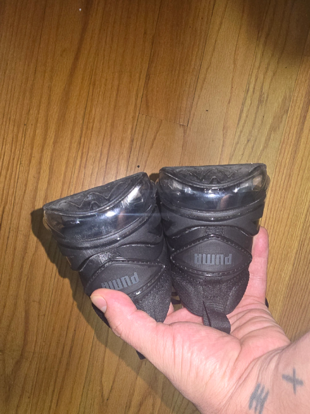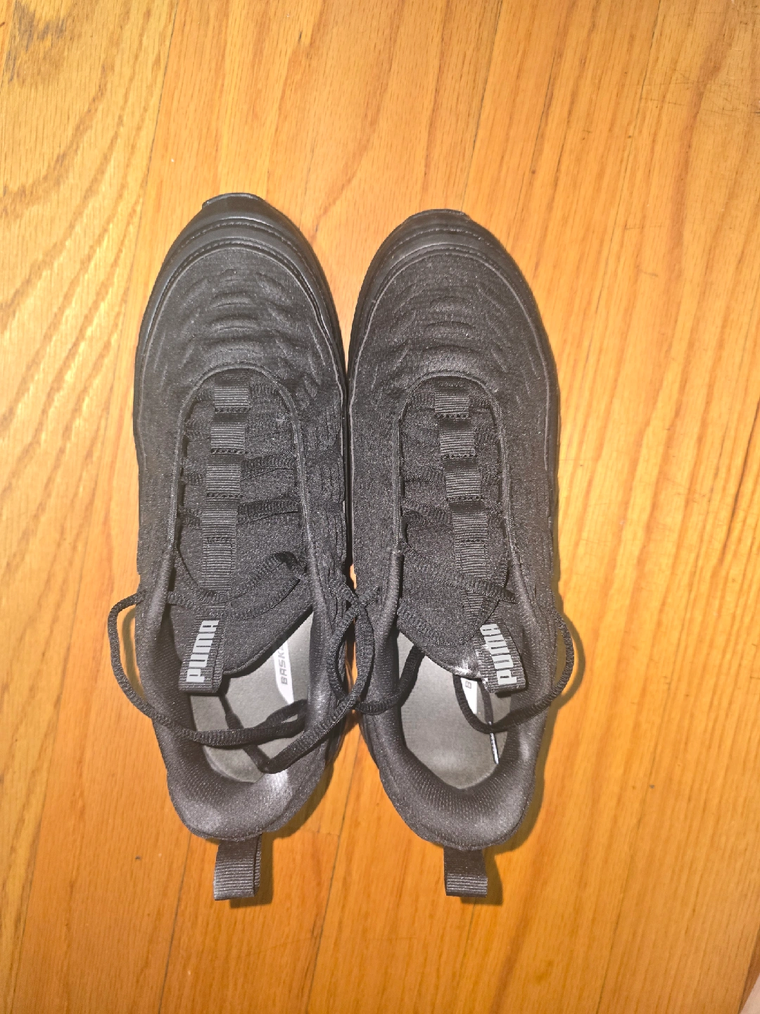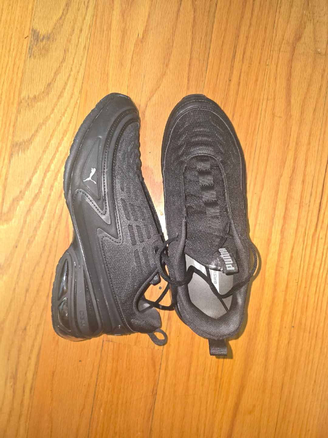 Selling a pair of Puma sneakers in black. They are in good condition and ready for a new home! Feel free to message me if you're interested. I don't have the box!