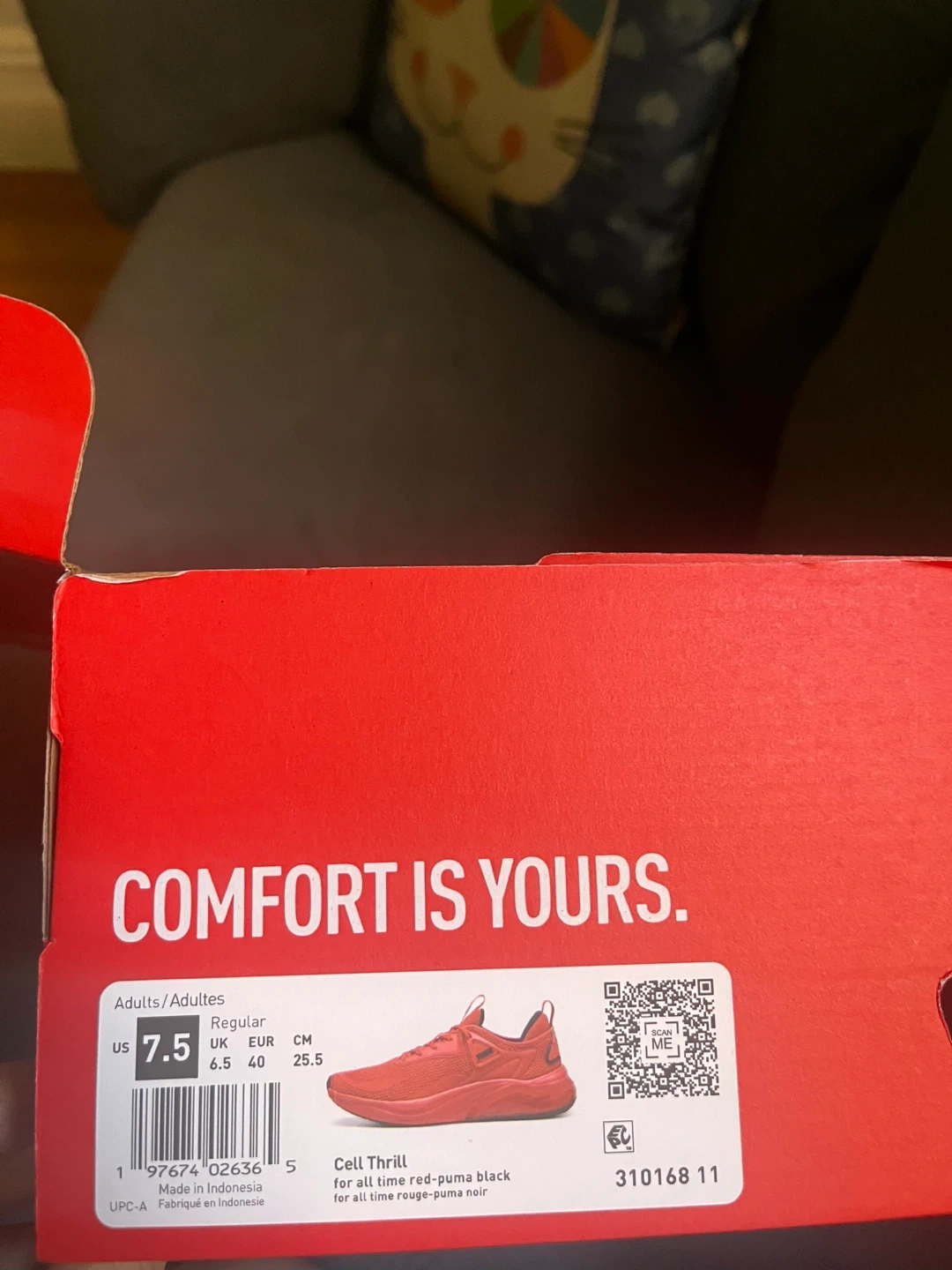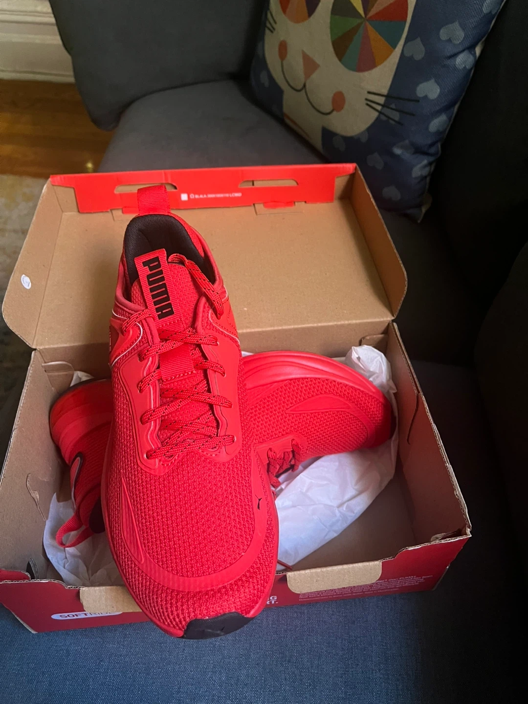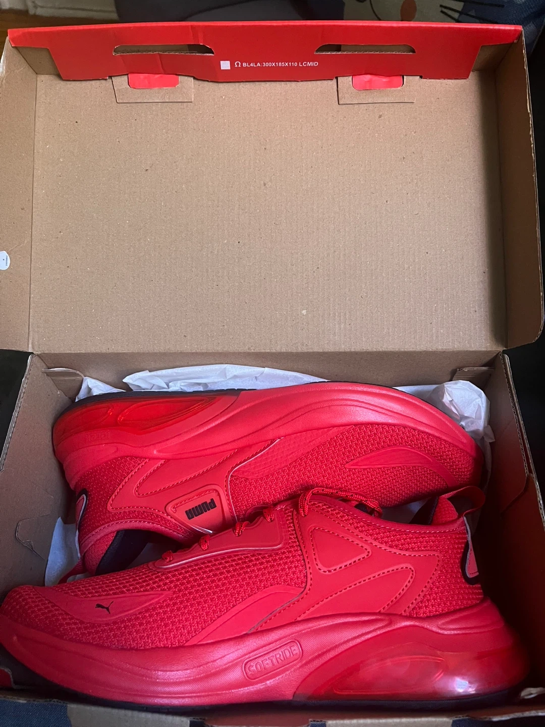 Selling a pair of Puma sneakers in red! They are a US size 7.5 and come with the original box