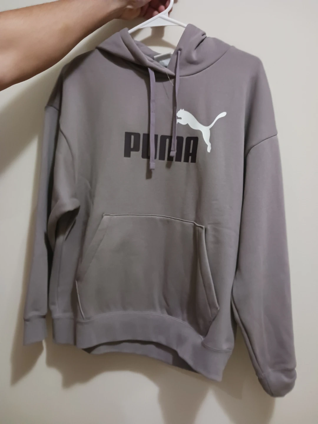 65Selling a Puma hoodie in gray. It features the Puma logo on the front and a comfortable fit. Perfect for casual wear or workouts!