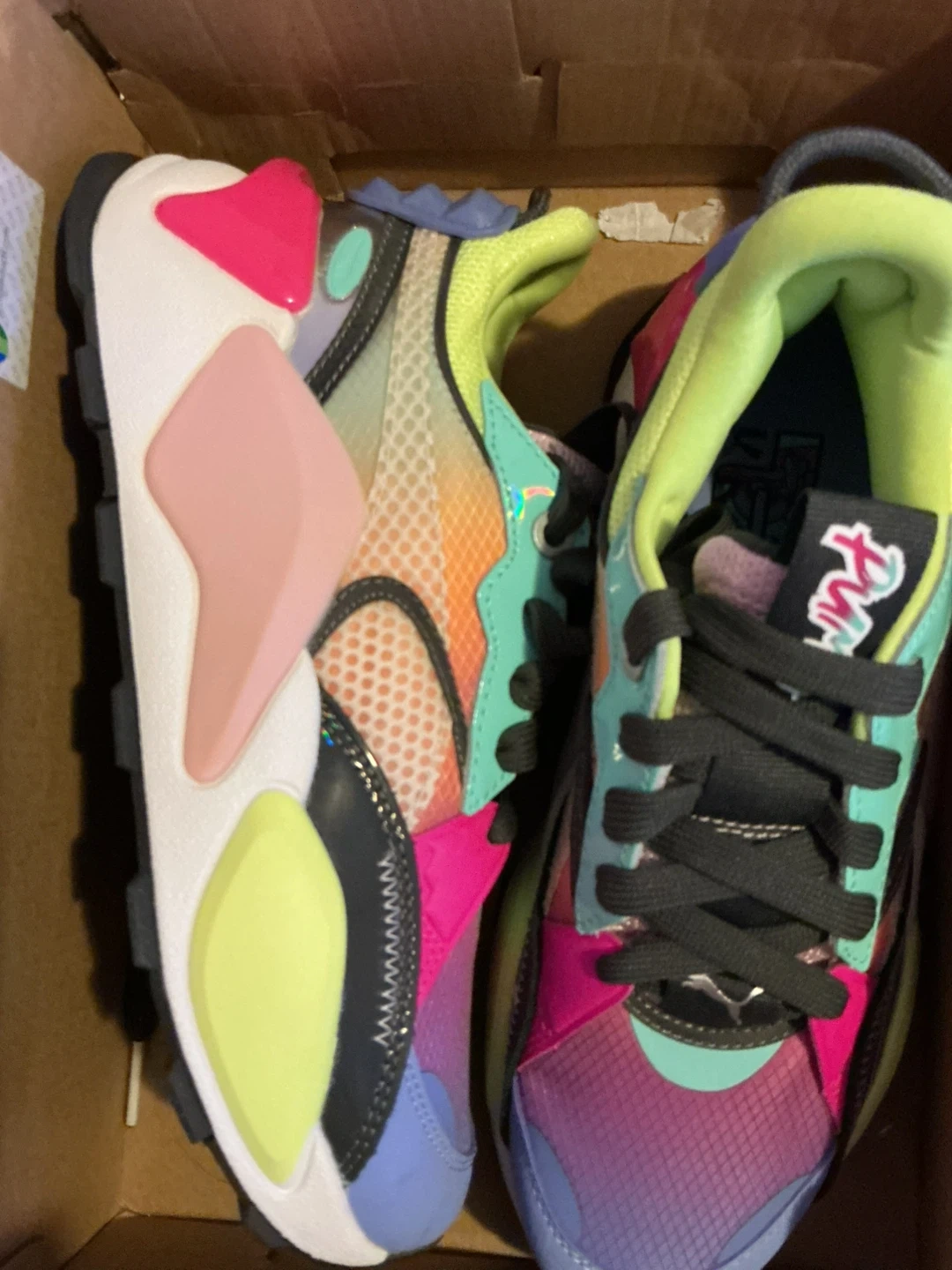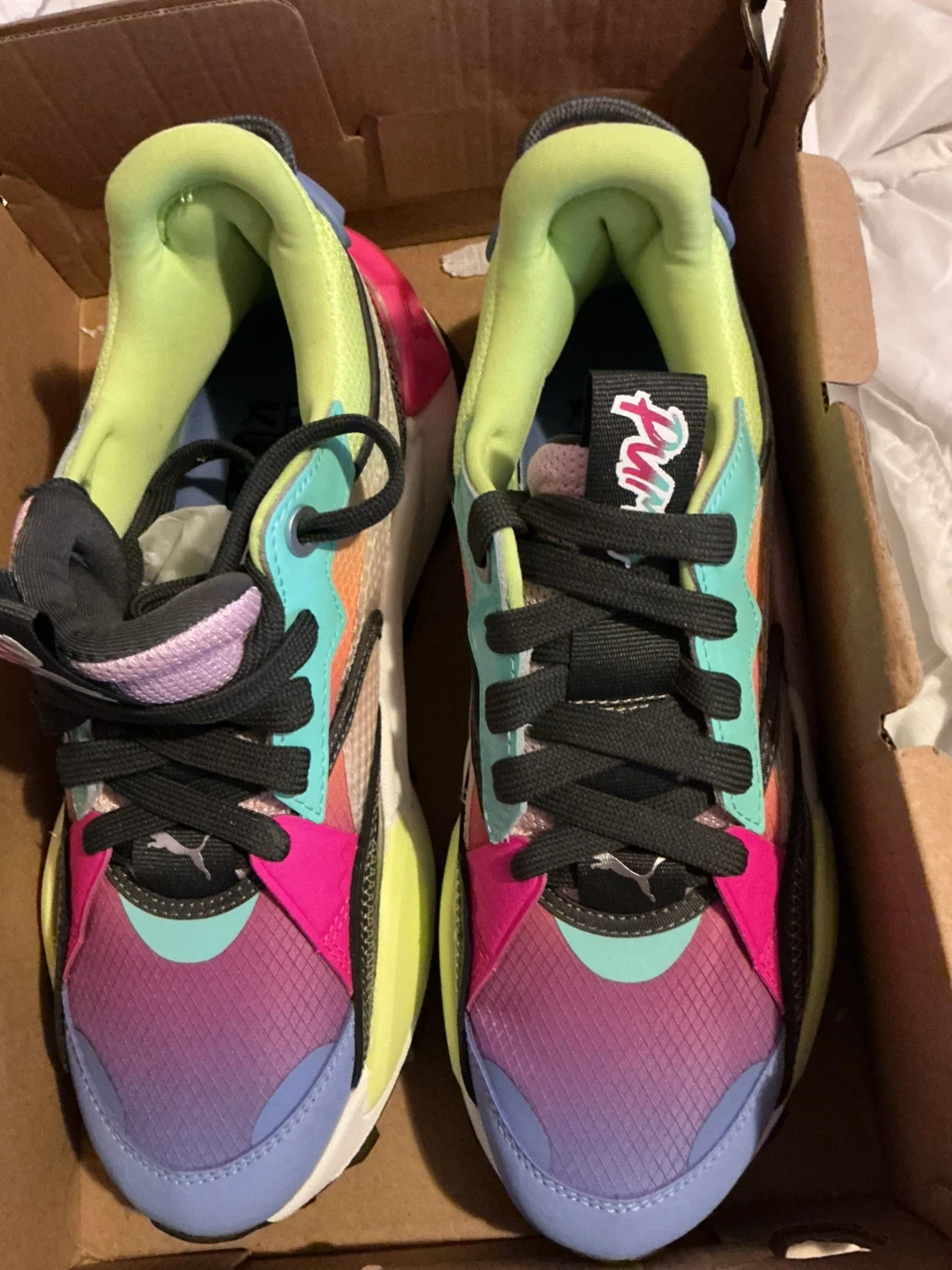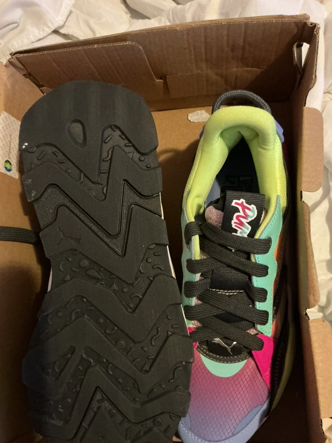 0Selling a pair of Puma Run XX Nitro women's running shoes. They come in a vibrant multicolor design and include the original box. These shoes are designed for comfort and performance, perfect for your running needs!