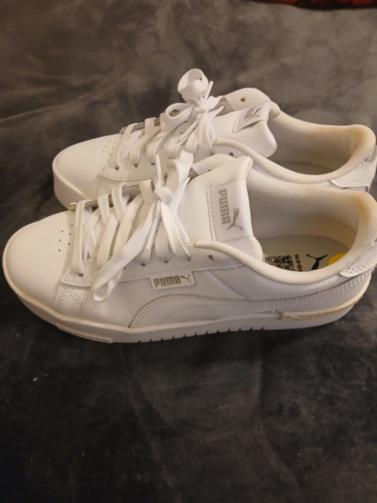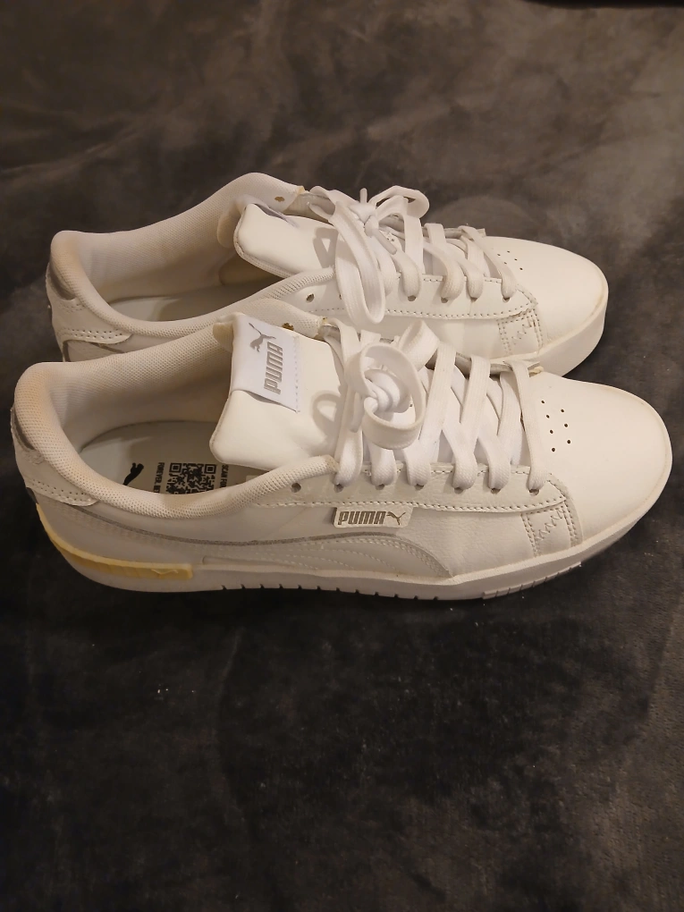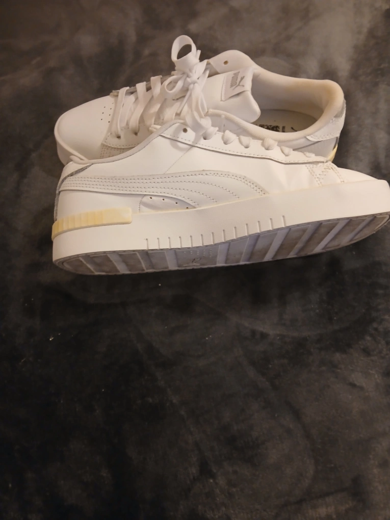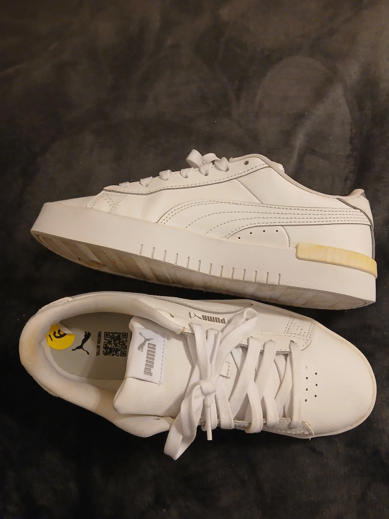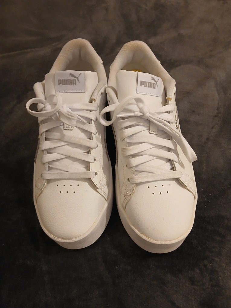 5Selling a pair of Puma Smash Platform v2 L sneakers in white! These stylish shoes are in great condition and ready for a new home. They feature a classic design with a modern platform sole, perfect for adding a little lift to your everyday look.