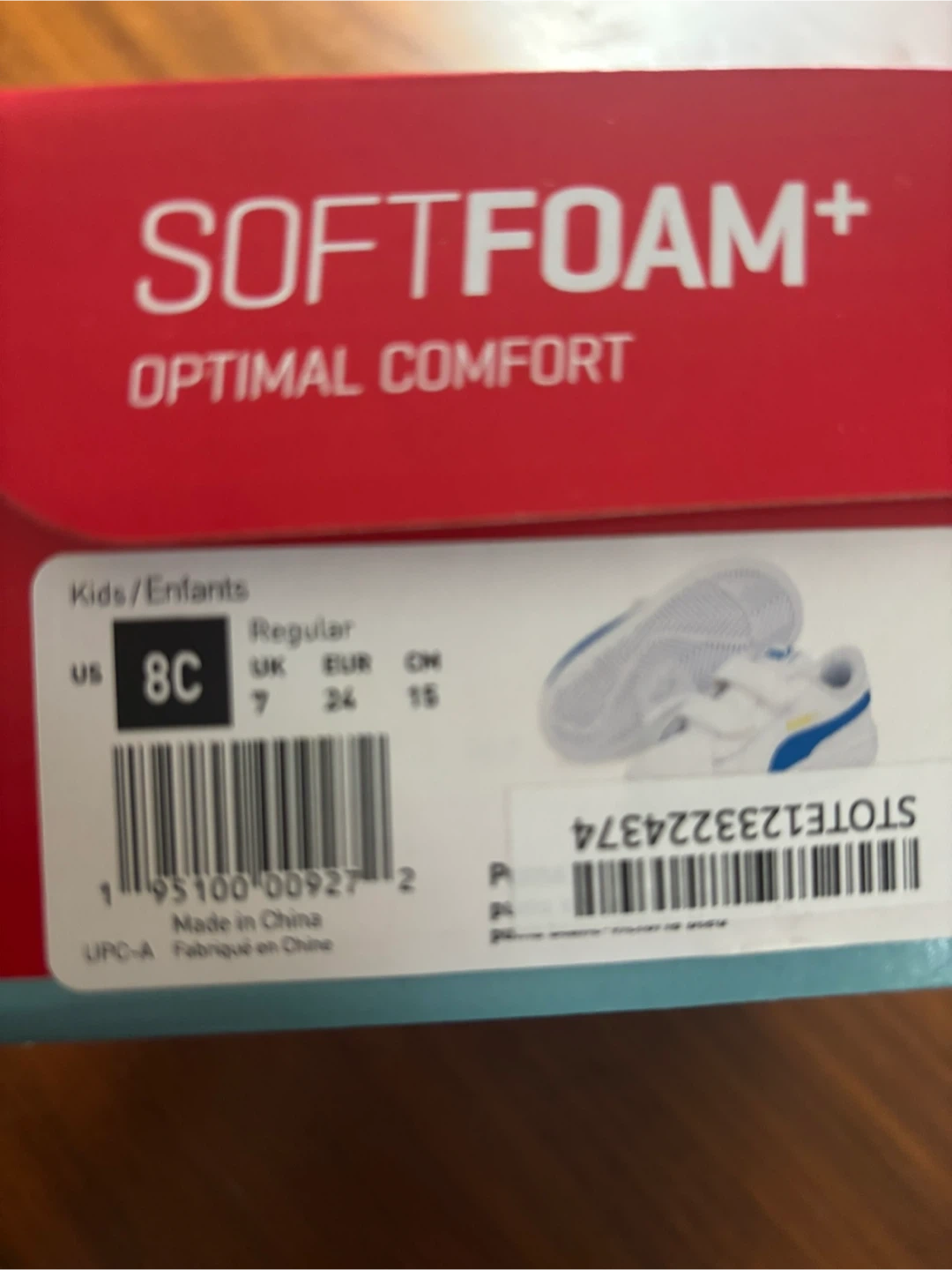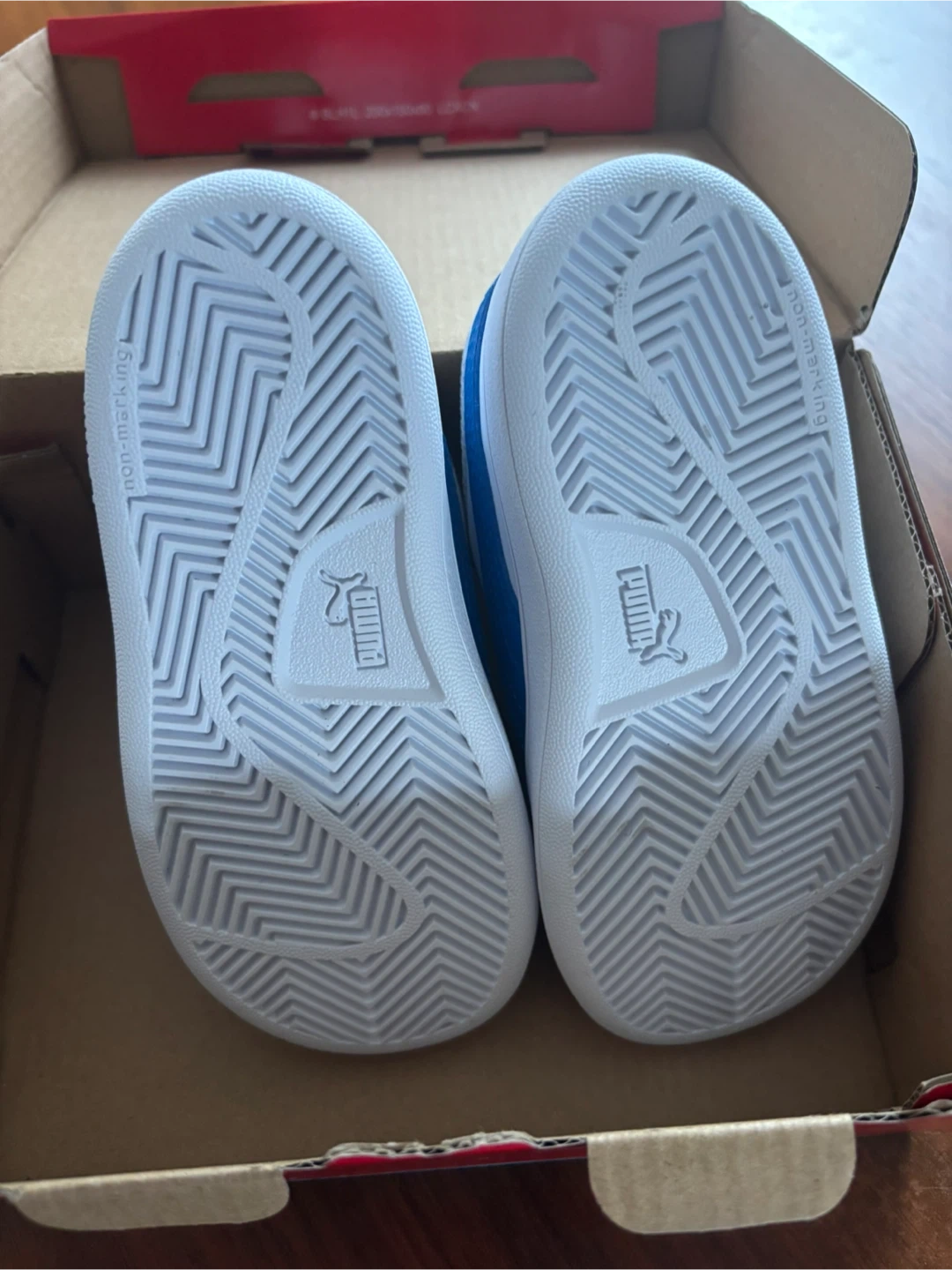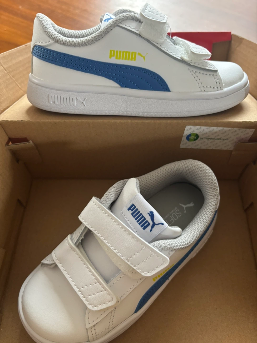 I'm selling a pair of Puma Smash V2 sneakers in size 8C. They're in great condition and come with the original box! These sneakers feature a SOFTFOAM+ insole for optimal comfort. Perfect for your little one!