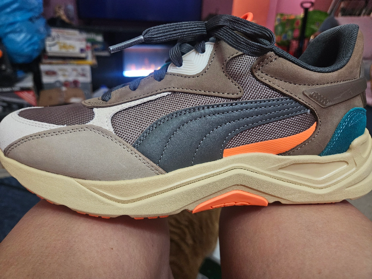 Brand new with box Multicolor puma track sneaker! Men size 91/2 Beige brown and green!