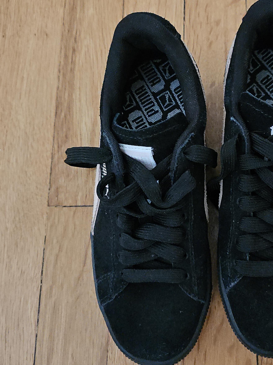 Selling a pair of Puma Suede Classic sneakers in black. These are a timeless style and great for everyday wear!