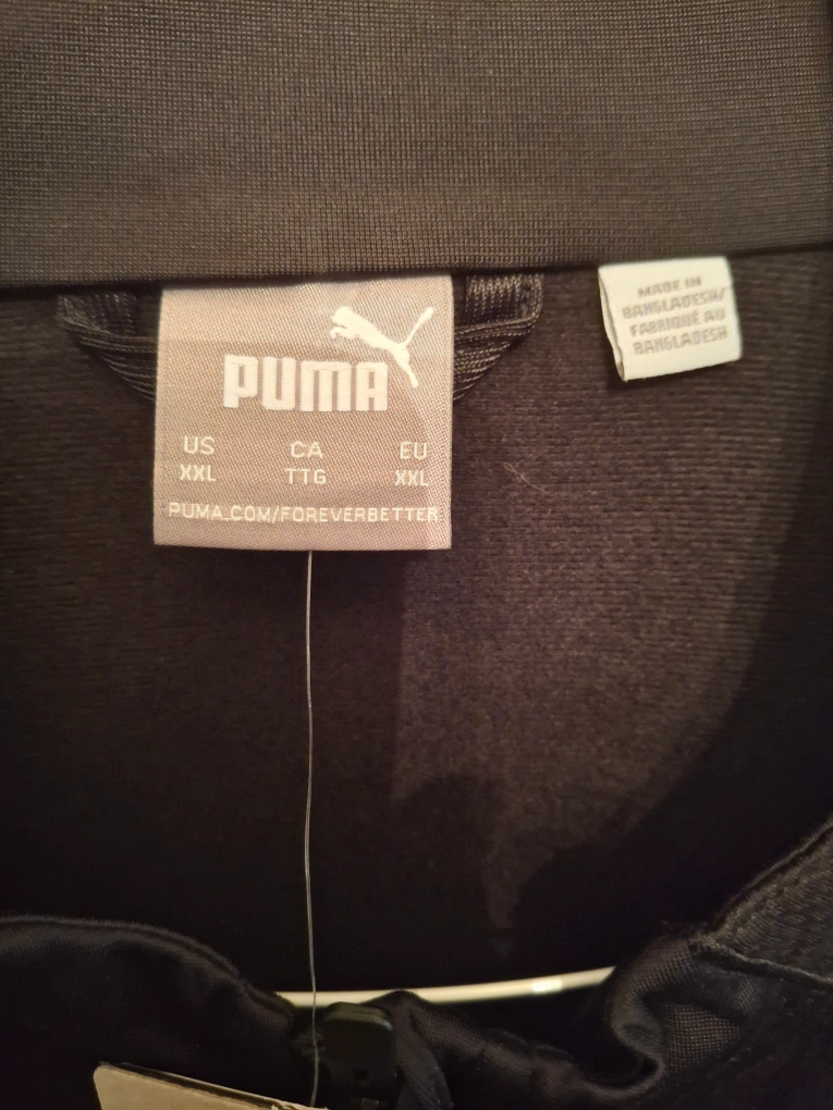 Selling a brand new with tags Puma jacket in size XXL. It's a sleek black color and features Puma's DRYCELL technology. The jacket is part of Puma's 'Forever Better' initiative and contains recycled material