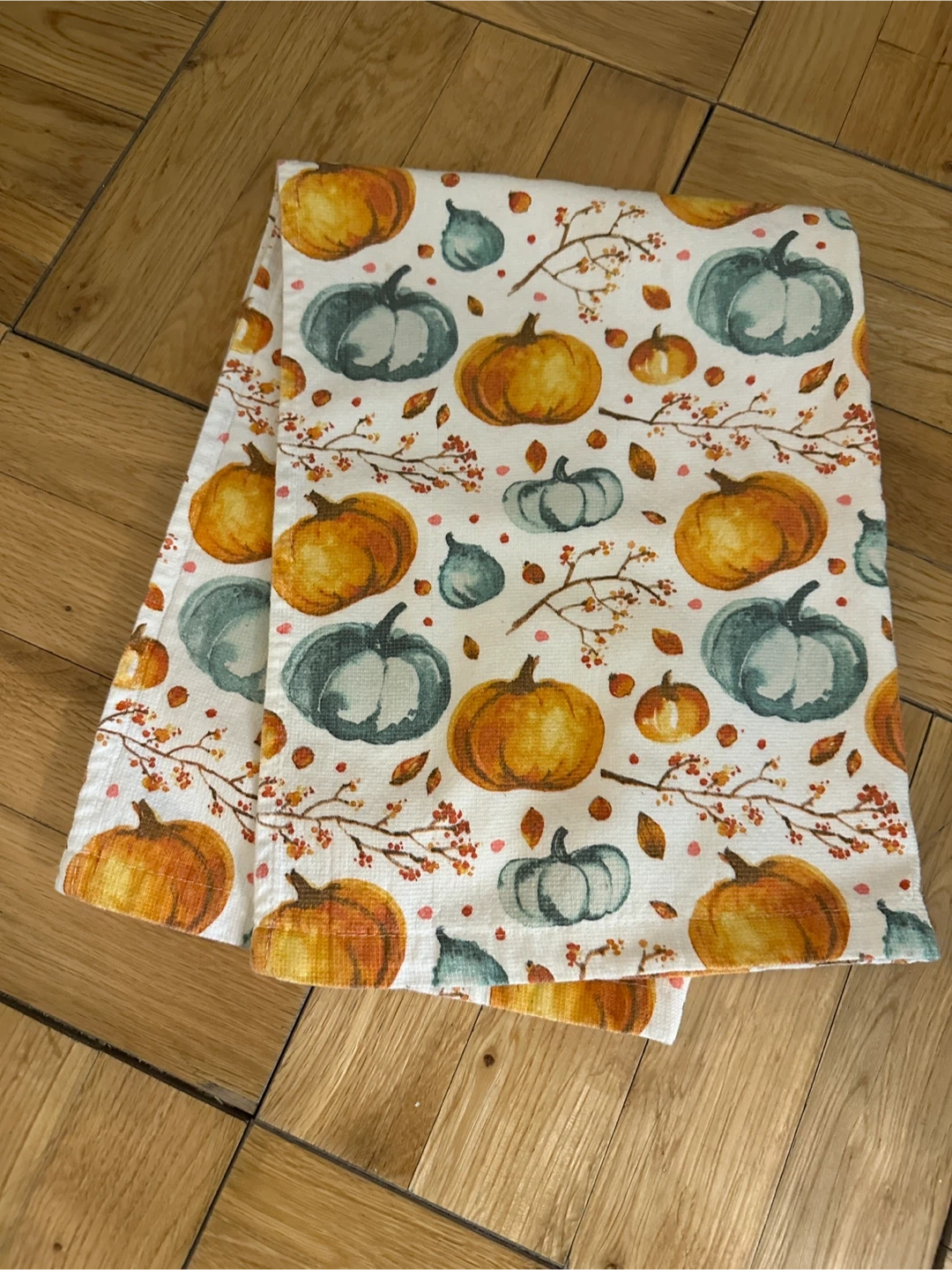 Here's a festive kitchen towel with a cute pumpkin print! It's perfect for adding a touch of autumn to your kitchen decor