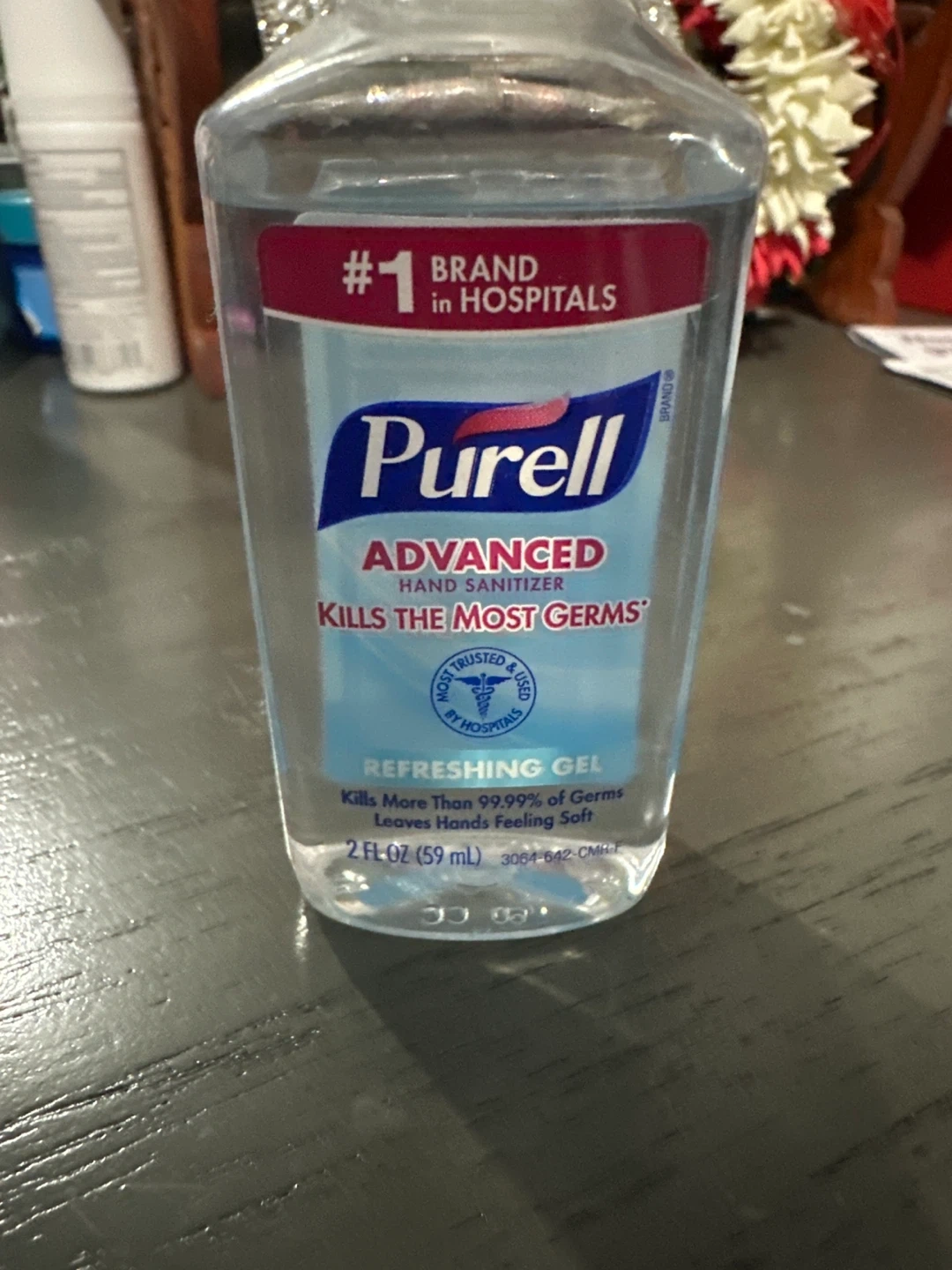 Selling a bottle of Purell Advanced Hand Sanitizer. It's a refreshing gel that kills more than 99.99% of germs and leaves hands feeling soft. The bottle contains 2 fl oz (59 mL).