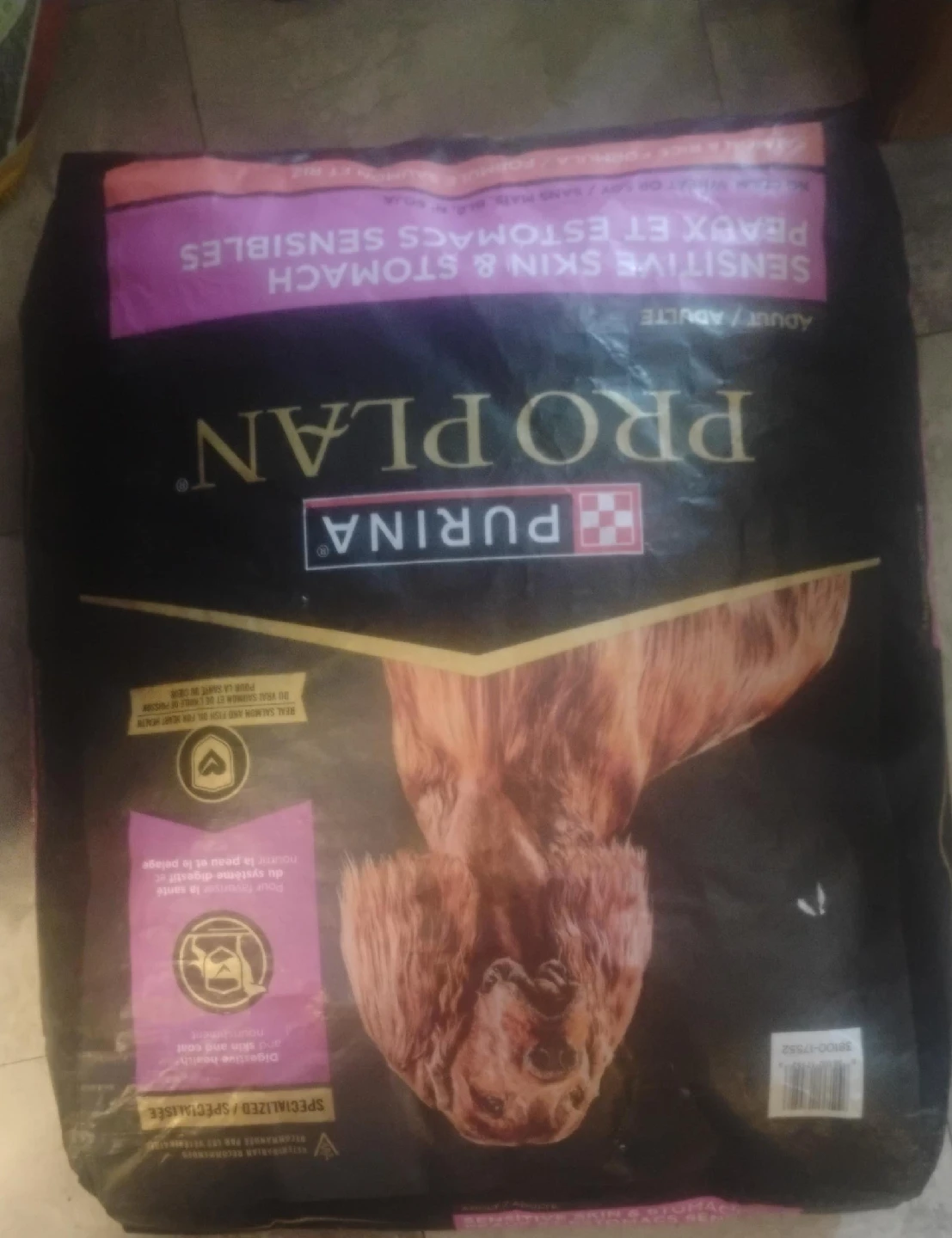 60Selling a bag of Purina Pro Plan Sensitive Skin & Stomach adult dog food. This formula is designed to support digestive health and promote a healthy skin and coat for your dog. It also contains real salmon and fish oil for heart health