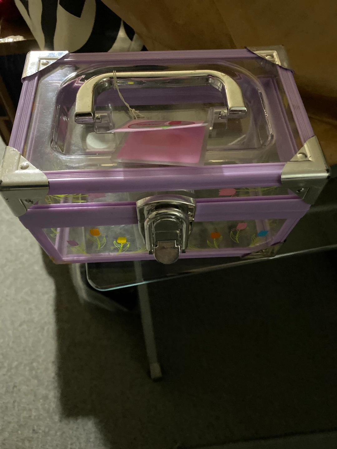 Here's a cute purple acrylic makeup storage box! It features a clear design with floral details on the drawer. Perfect for organizing your beauty essentials! Can pay by Cash Venmo or Zelle. Pick up in Fortlee or Hell’s Kitchen ( NYC)