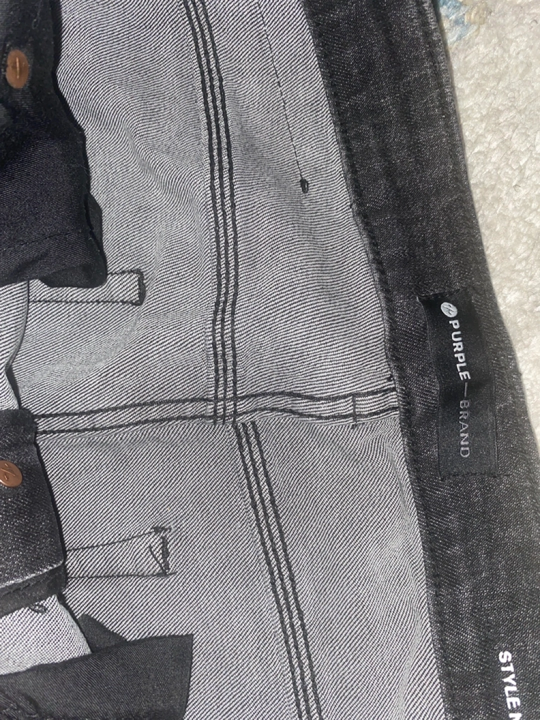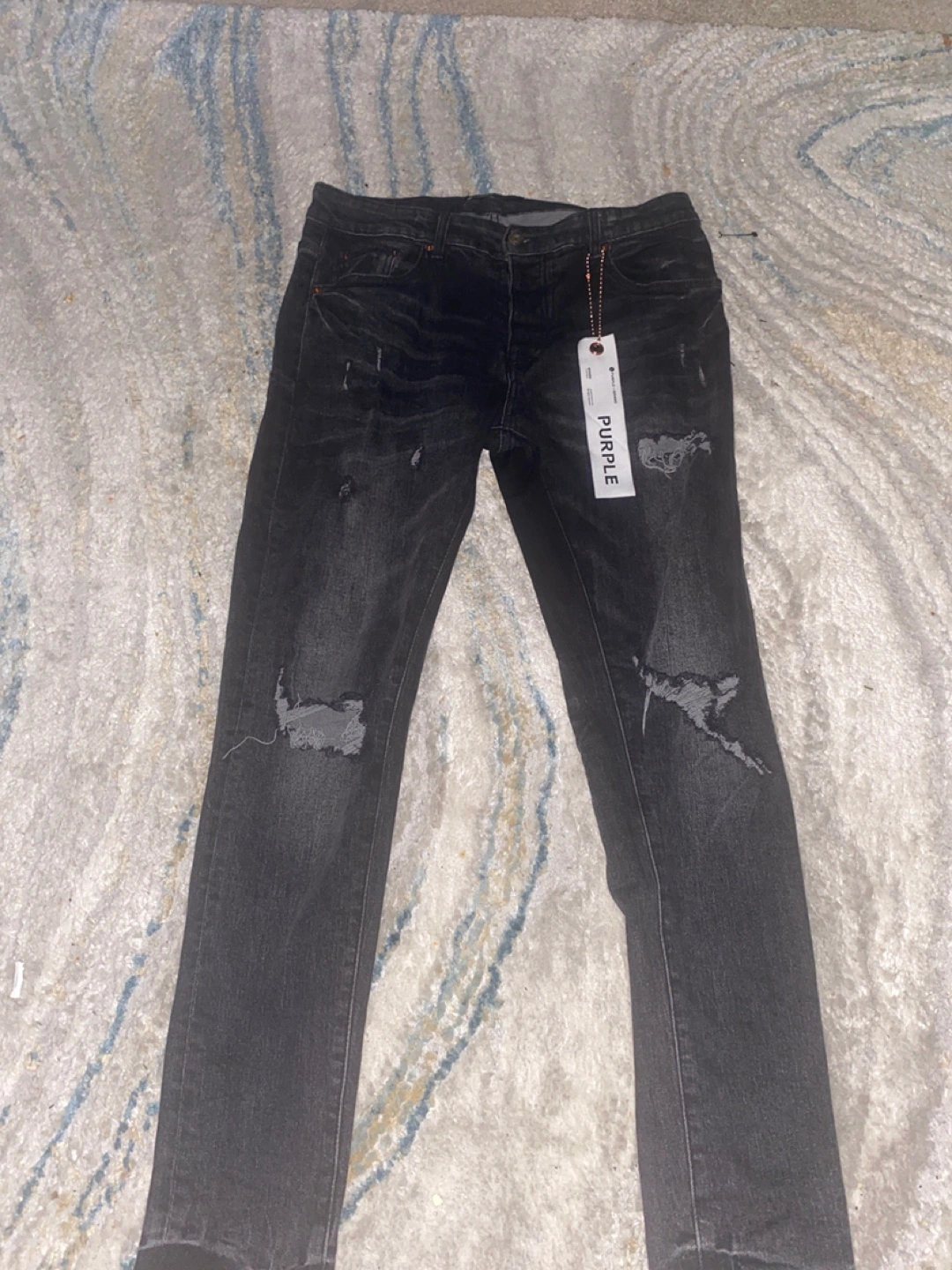 10Dark gray skinny jeans. Distressed detailing. New with tags. Size not specified.