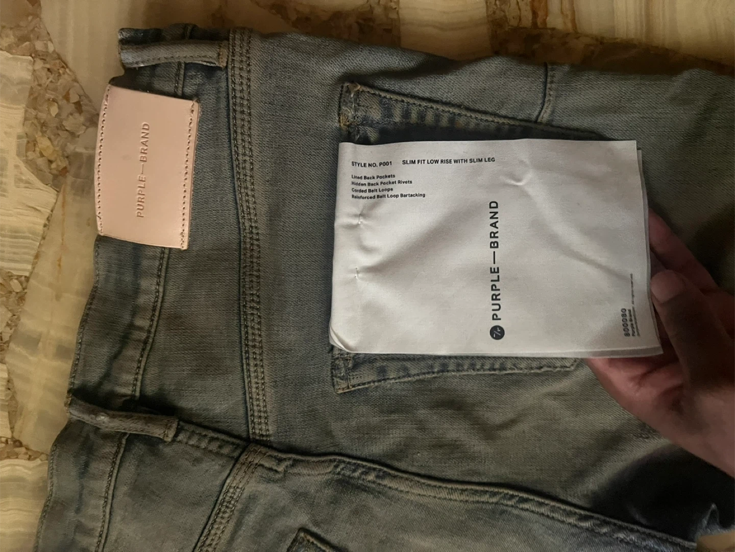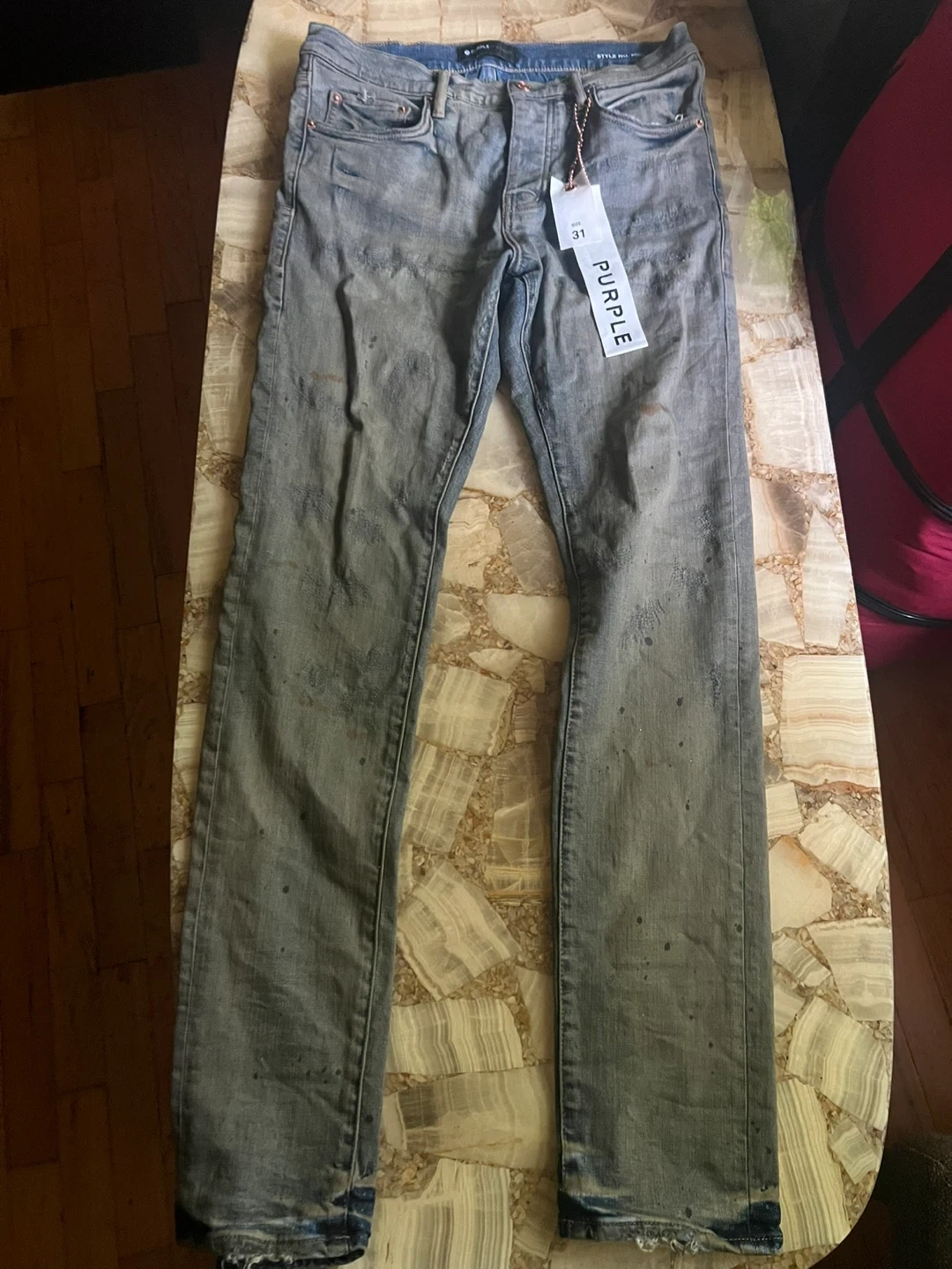 10Selling a pair of new Purple Brand P001 slim fit, low-rise jeans. They are size 31 and feature a slim leg. The jeans have reinforced back pockets and belt loops.