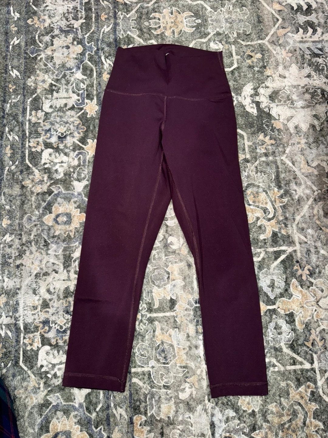 Women's size small purple leggings. High-waisted. Perfect for working out or casual wear.