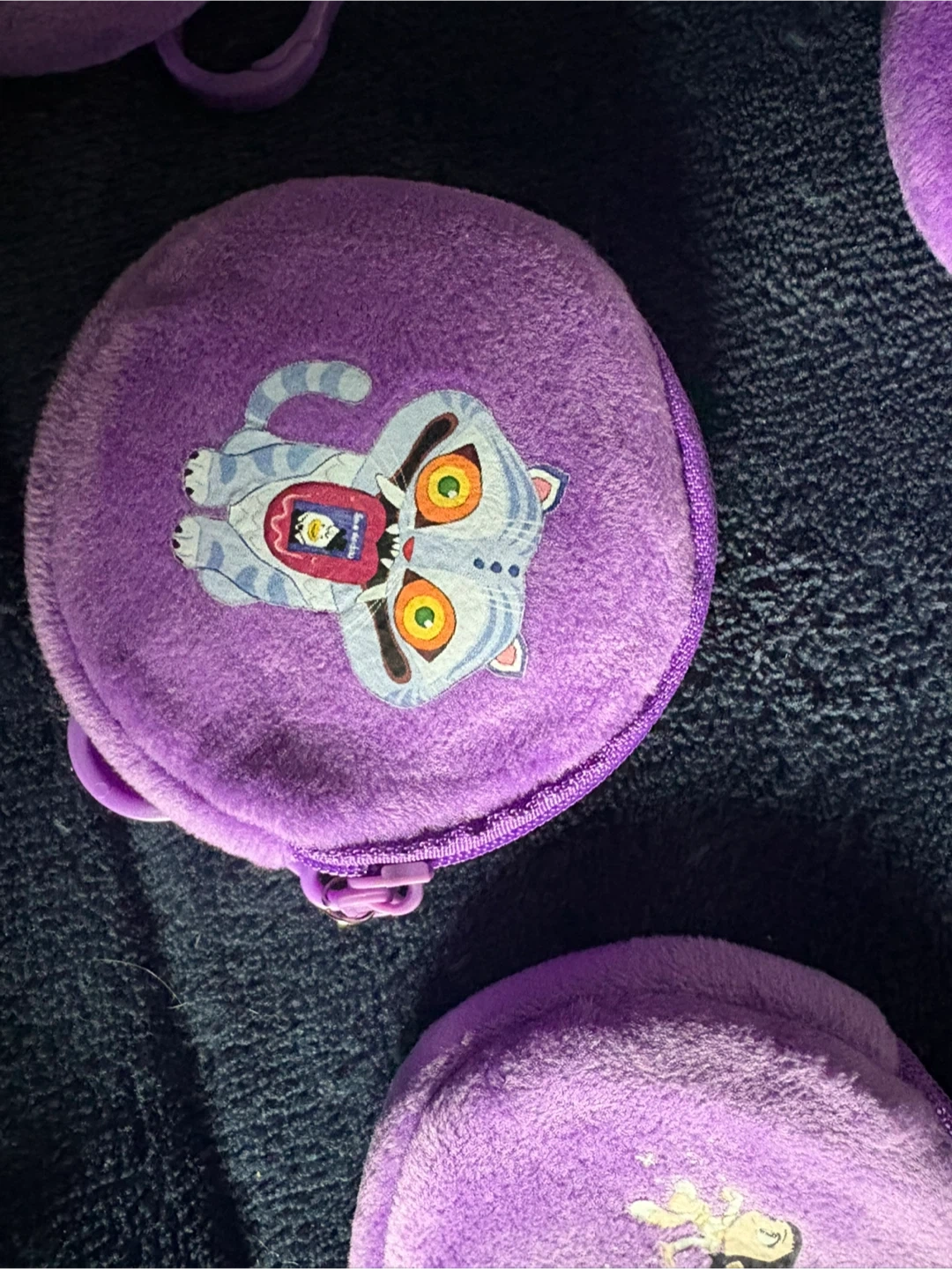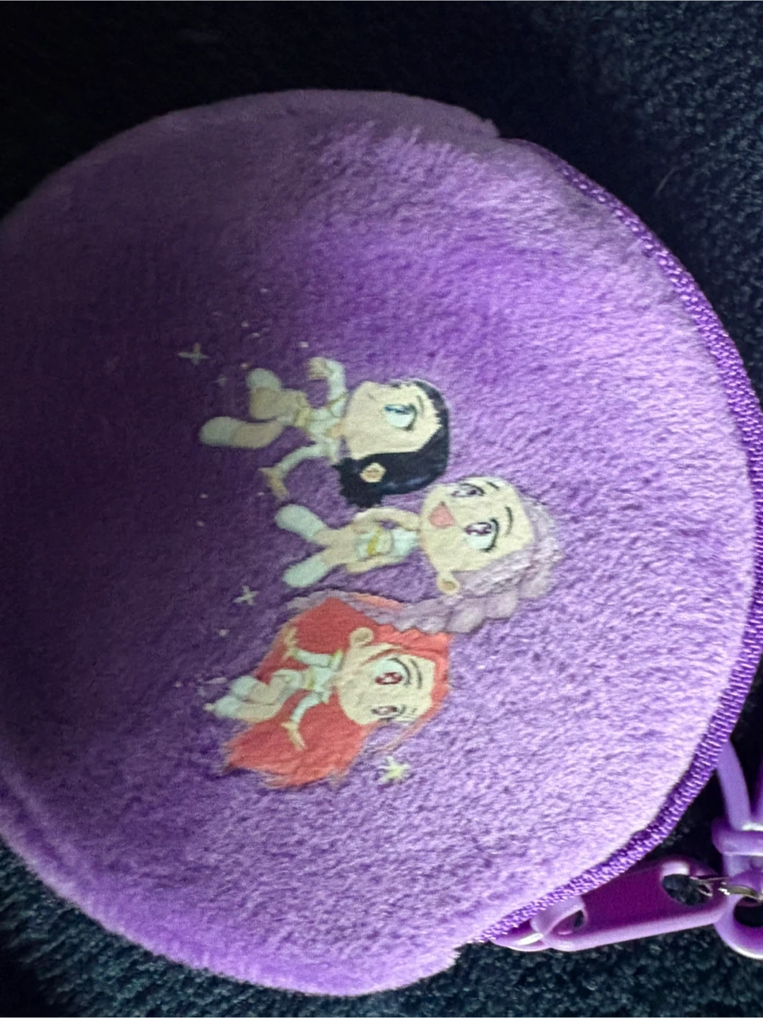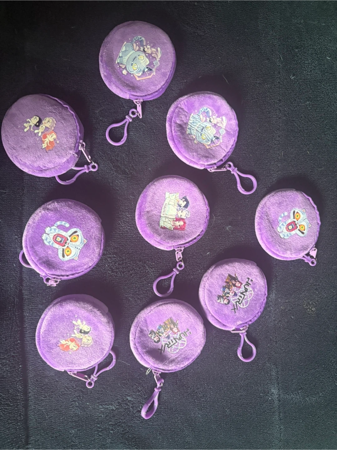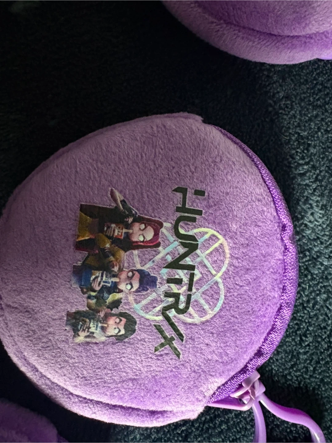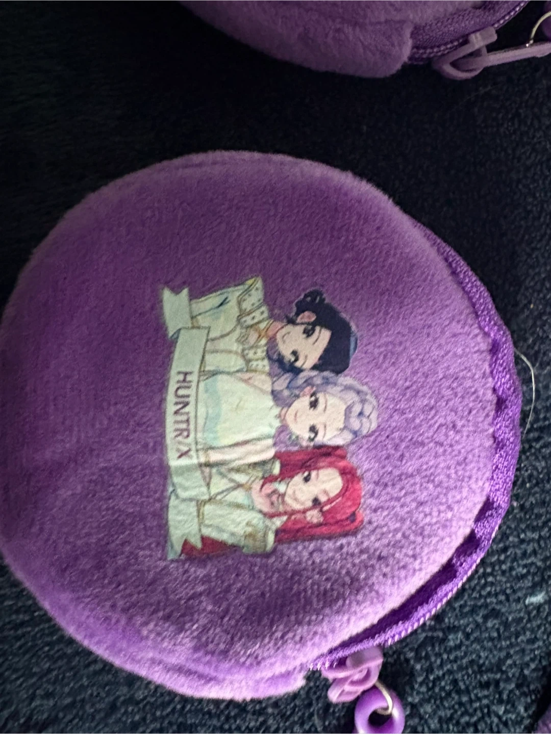 Cute purple plush coin purse featuring HUNTR.X designs! Perfect for holding small items or as a fun accessory